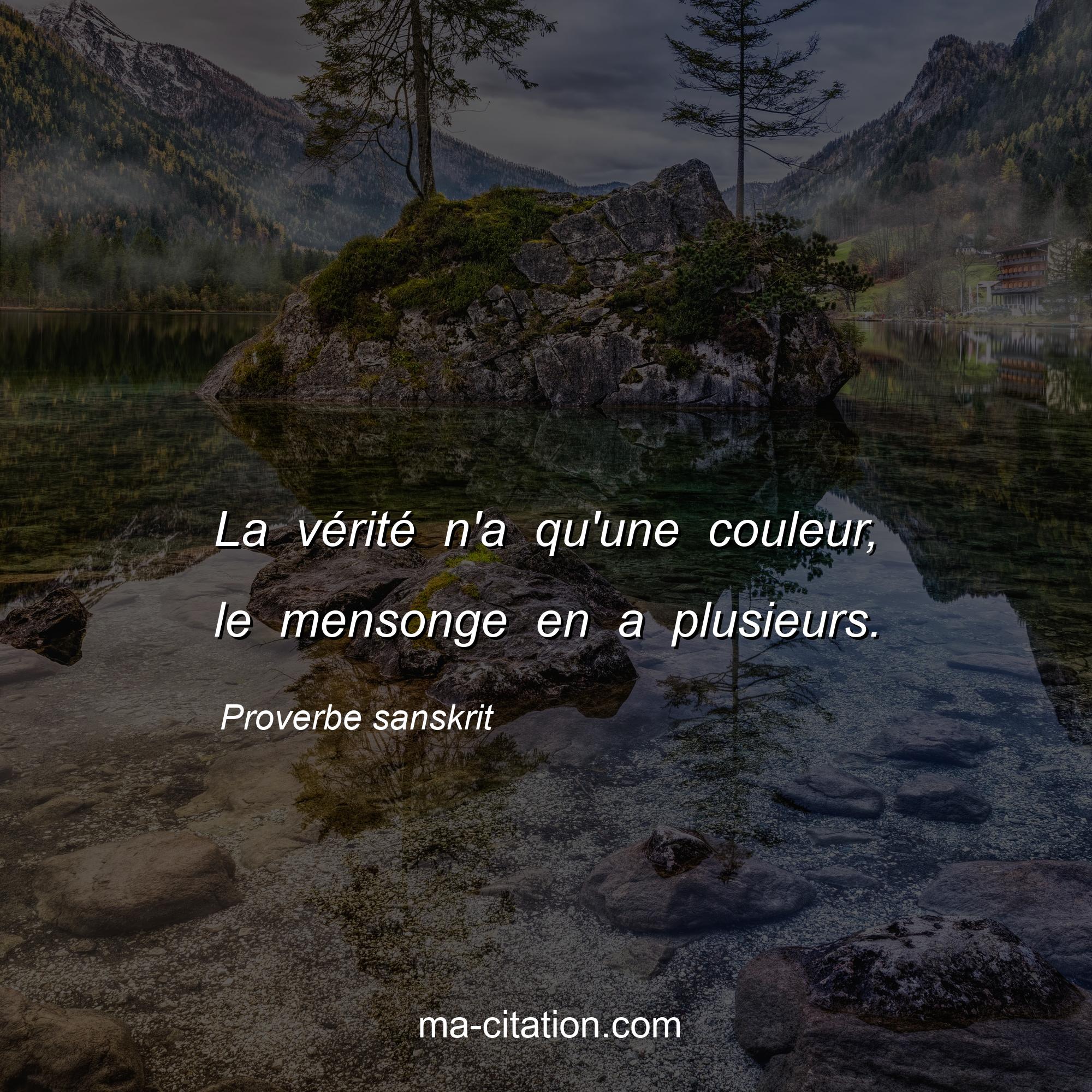 Proverbe sanskrit sur la vie :La vérité n'a qu'une couleur, le mensonge en a plusieurs.