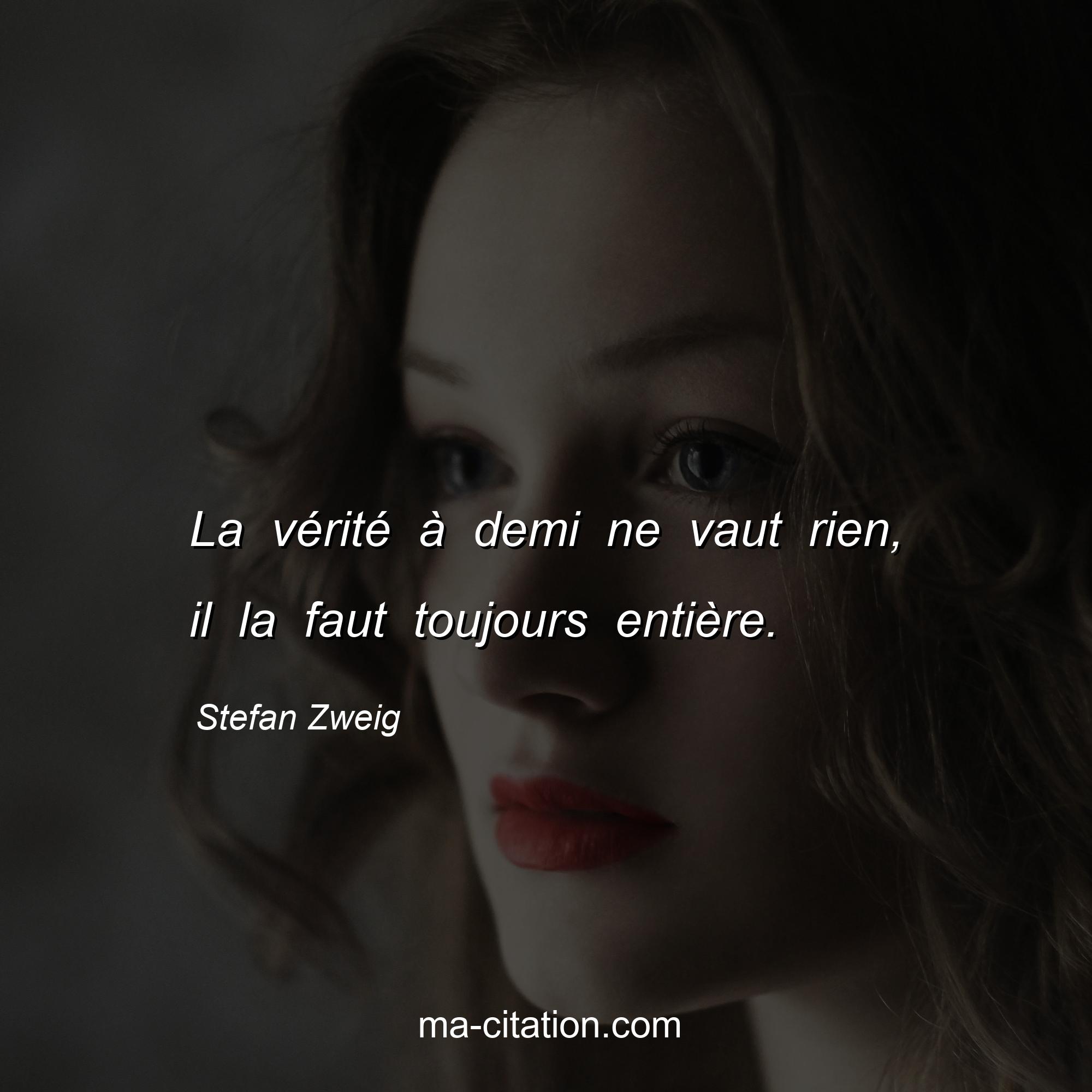 Citation sur la vie de Stefan Zweig :La vérité à demi ne vaut rien, il la faut toujours entière.