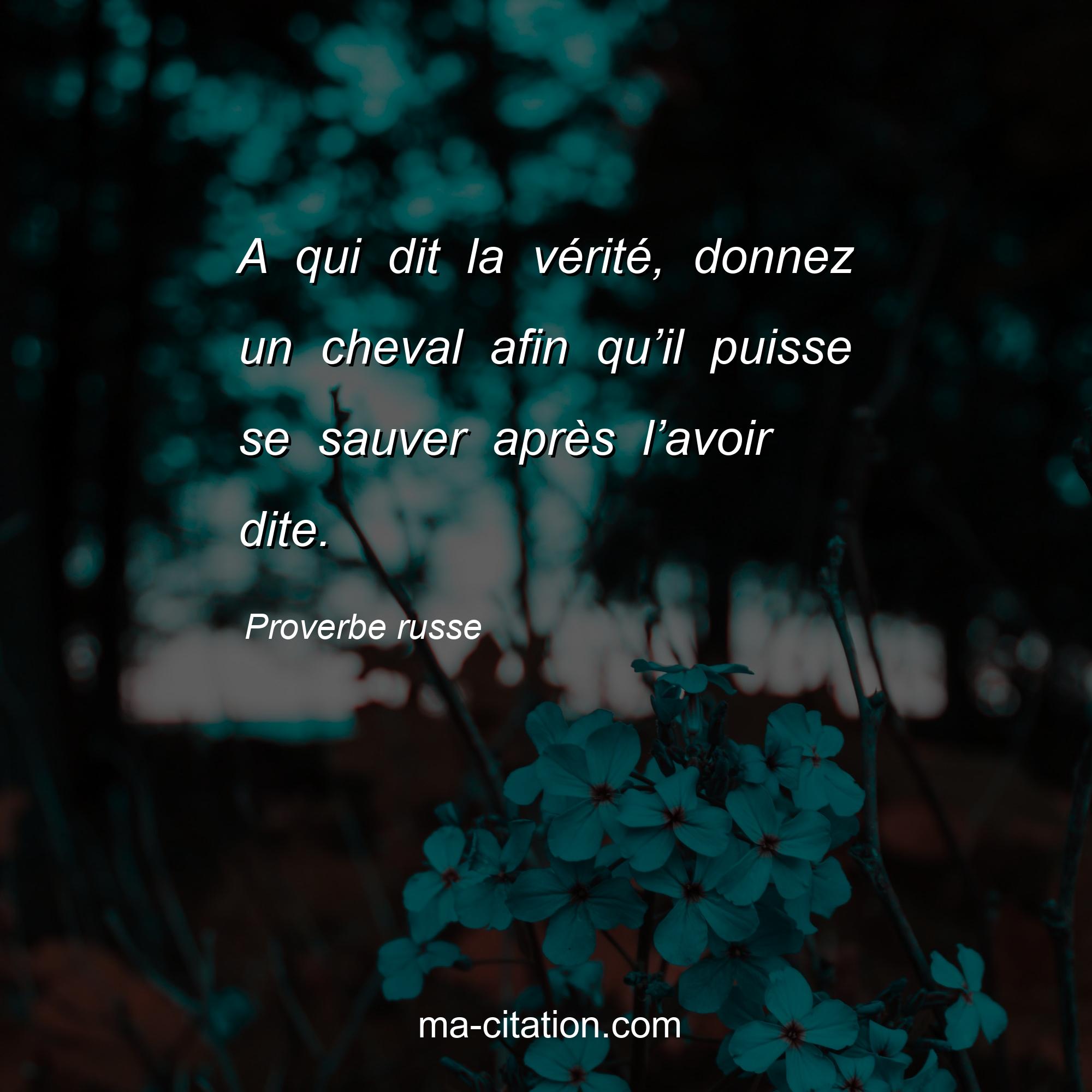 Proverbe russe sur la vie :A qui dit la vérité, donnez un cheval afin qu’il puisse se sauver après l’avoir dite.