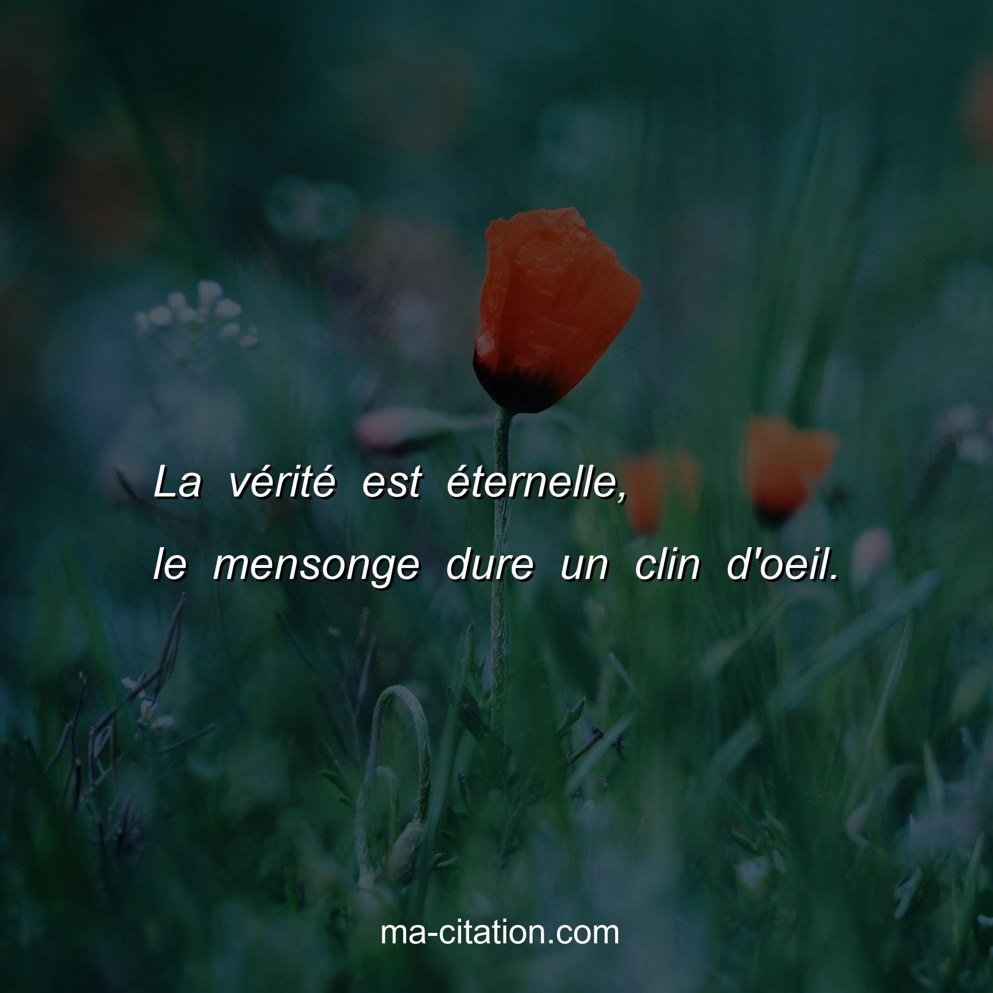 Citation sur la vie :La vérité est éternelle, le mensonge dure un clin d'oeil.