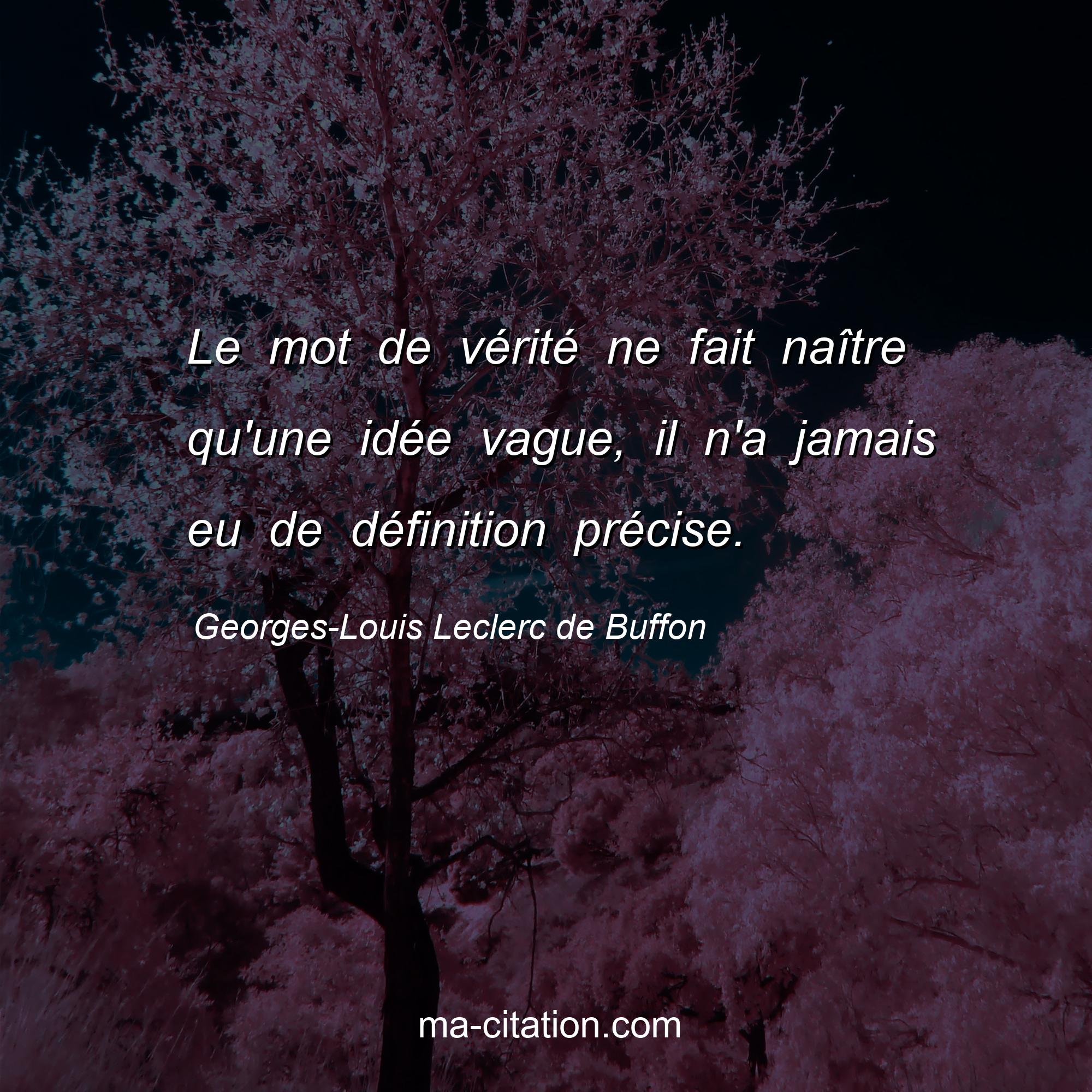 Citation sur la vie de Georges-Louis Leclerc de Buffon :Le mot de vérité ne fait naître qu'une idée vague, il n'a jamais eu de définition précise.