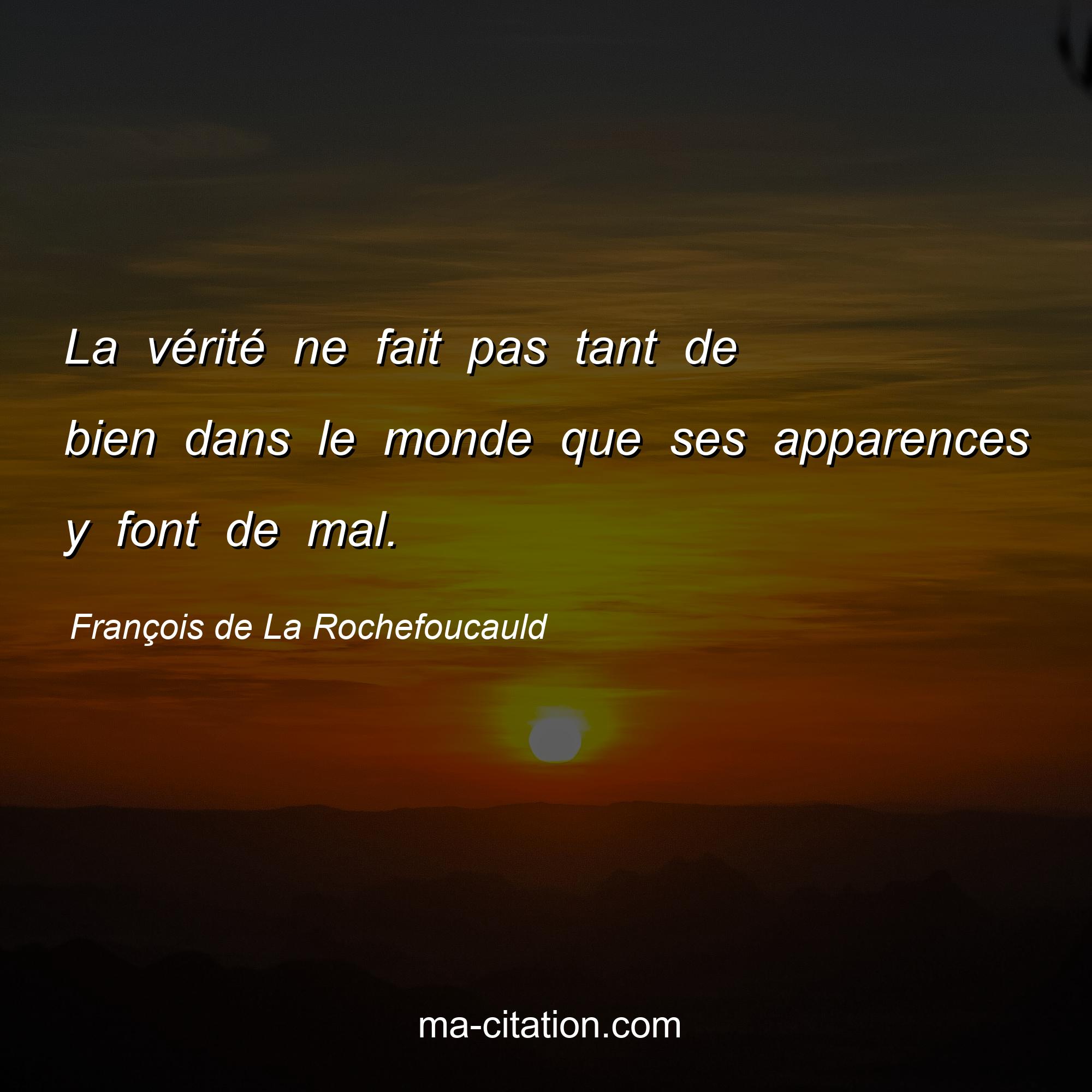 La vérité ne fait pas tant de bien dans le monde que ses apparences y font de mal.