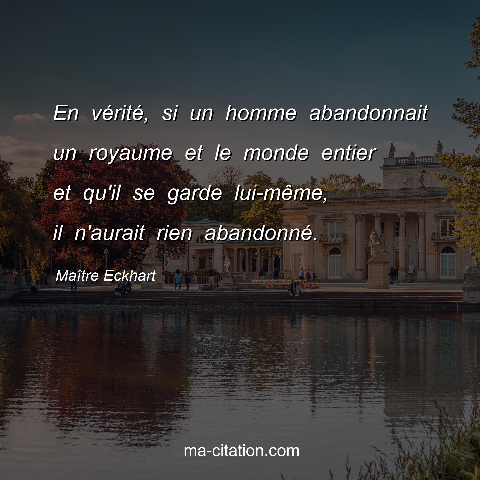 Citation sur la vie de Maître Eckhart :En vérité, si un homme abandonnait un royaume et le monde entier et qu'il se garde lui-même, il n'aurait rien abandonné.