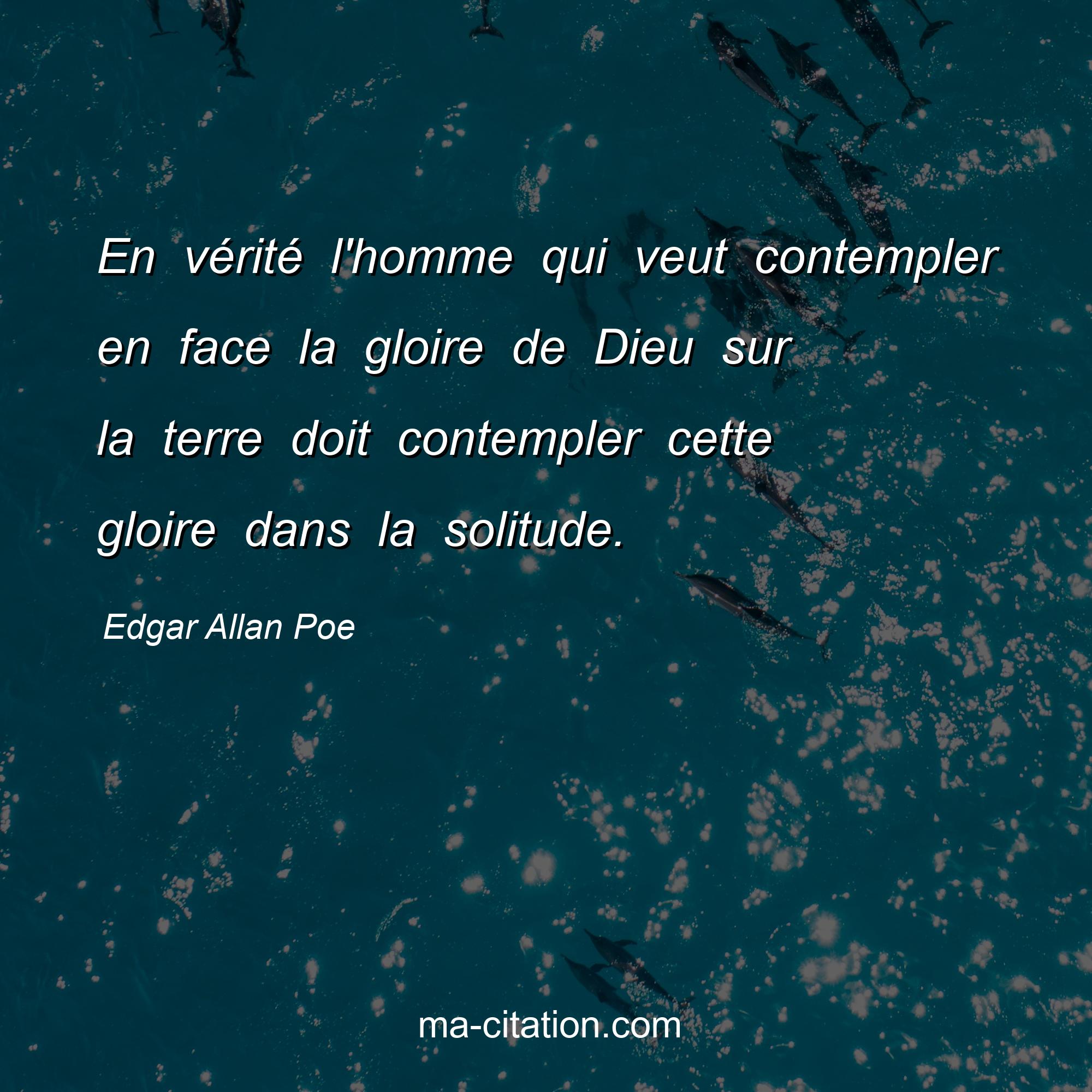 Citation sur la vie d'Edgar Allan Poe :En vérité l'homme qui veut contempler en face la gloire de Dieu sur la terre doit contempler cette gloire dans la solitude.