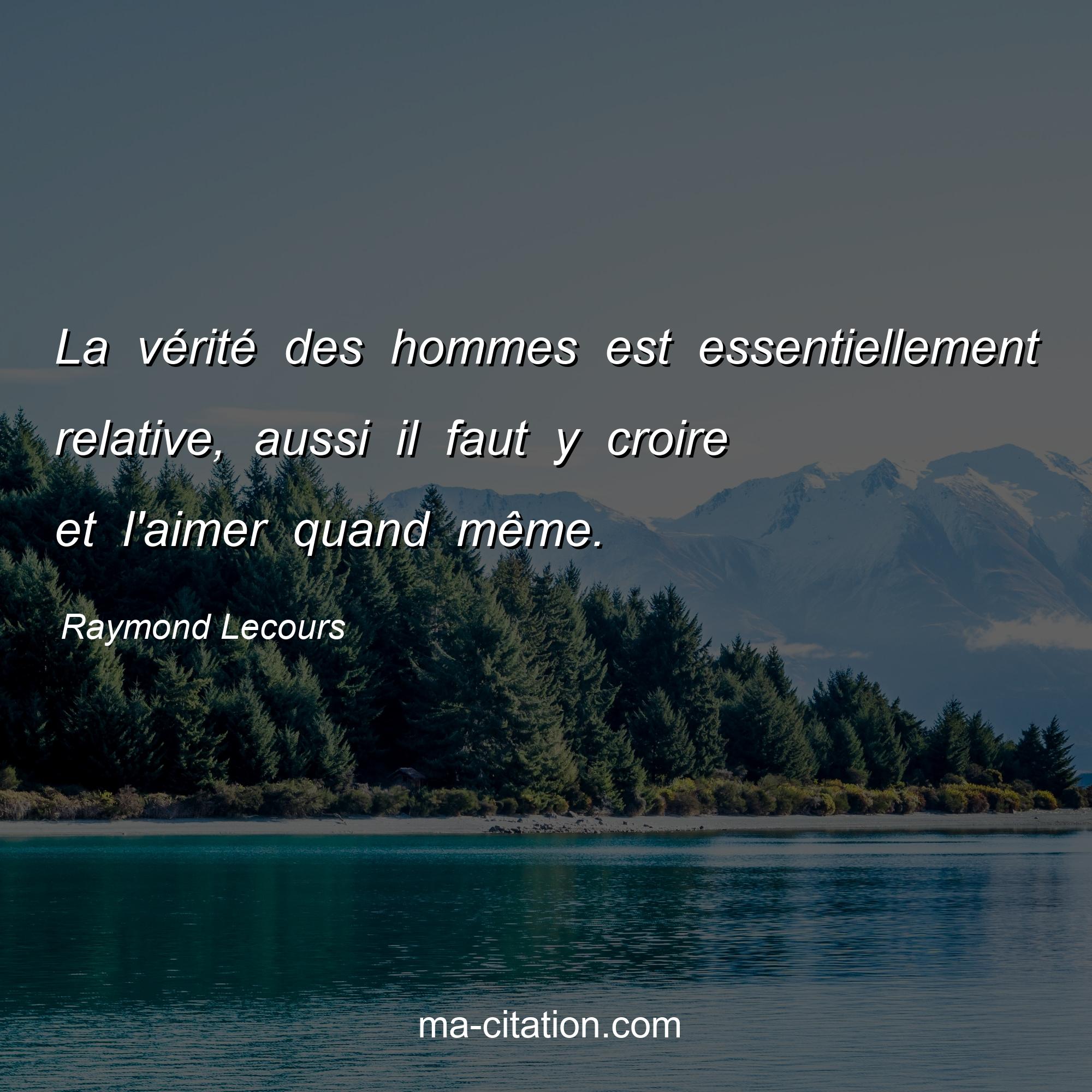 Raymond Lecours est l'auteur de la citation sur la vie "La vérité des hommes est essentiellement relative, aussi il faut y croire et l'aimer quand même.".