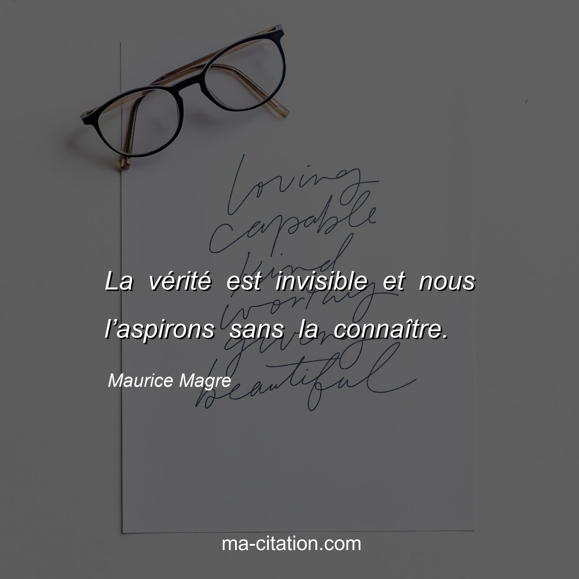 Citation sur la vie de Maurice Magre :La vérité est invisible et nous l’aspirons sans la connaître.