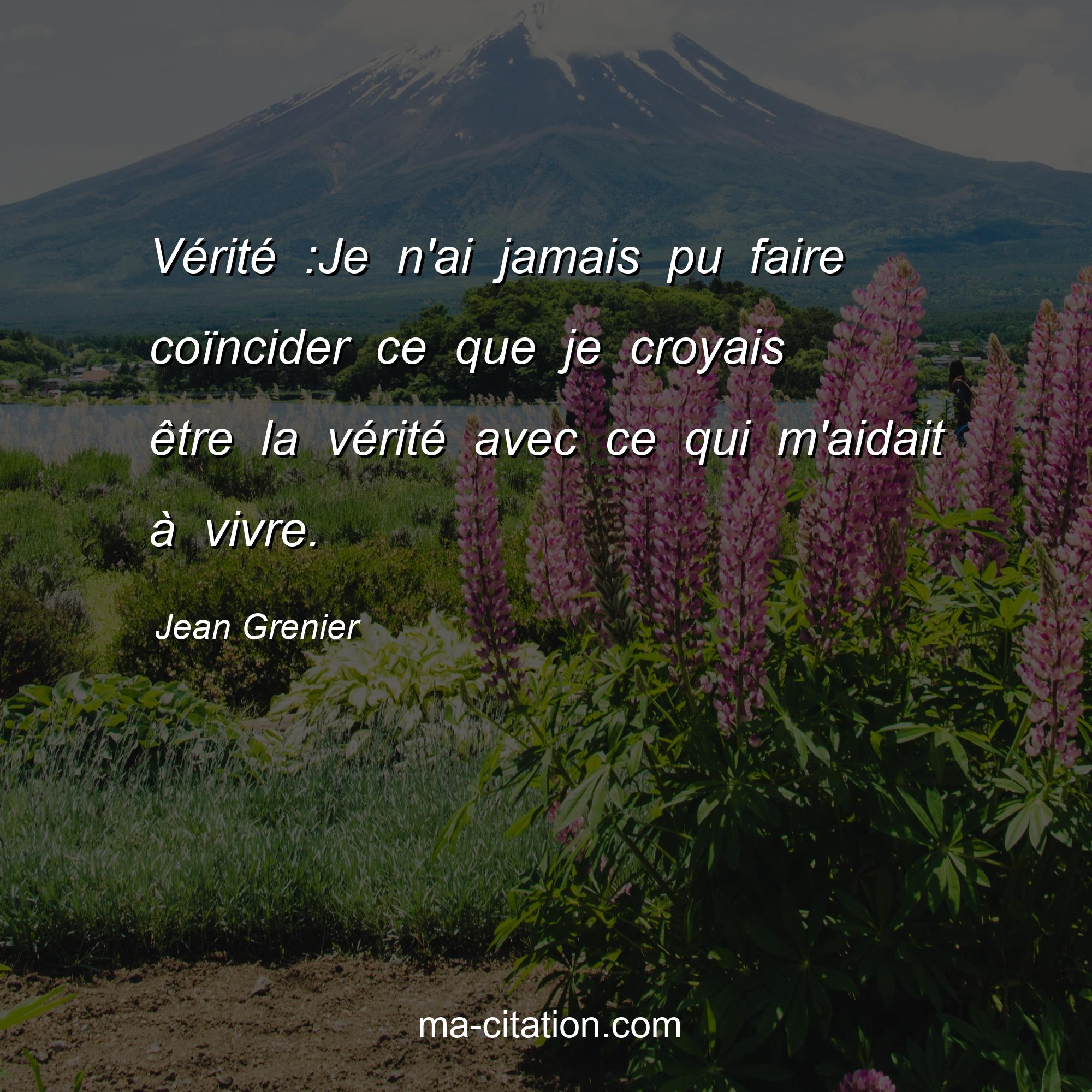 Citation sur la vie de Jean Grenier :Vérité :Je n'ai jamais pu faire coïncider ce que je croyais être la vérité avec ce qui m'aidait à vivre.