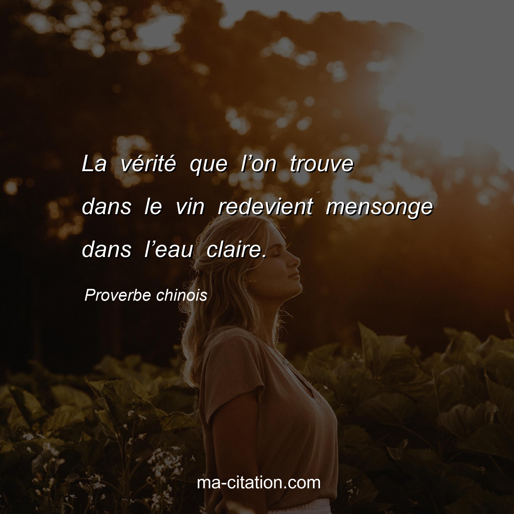 Proverbe chinois sur la vie :La vérité que l’on trouve dans le vin redevient mensonge dans l’eau claire.