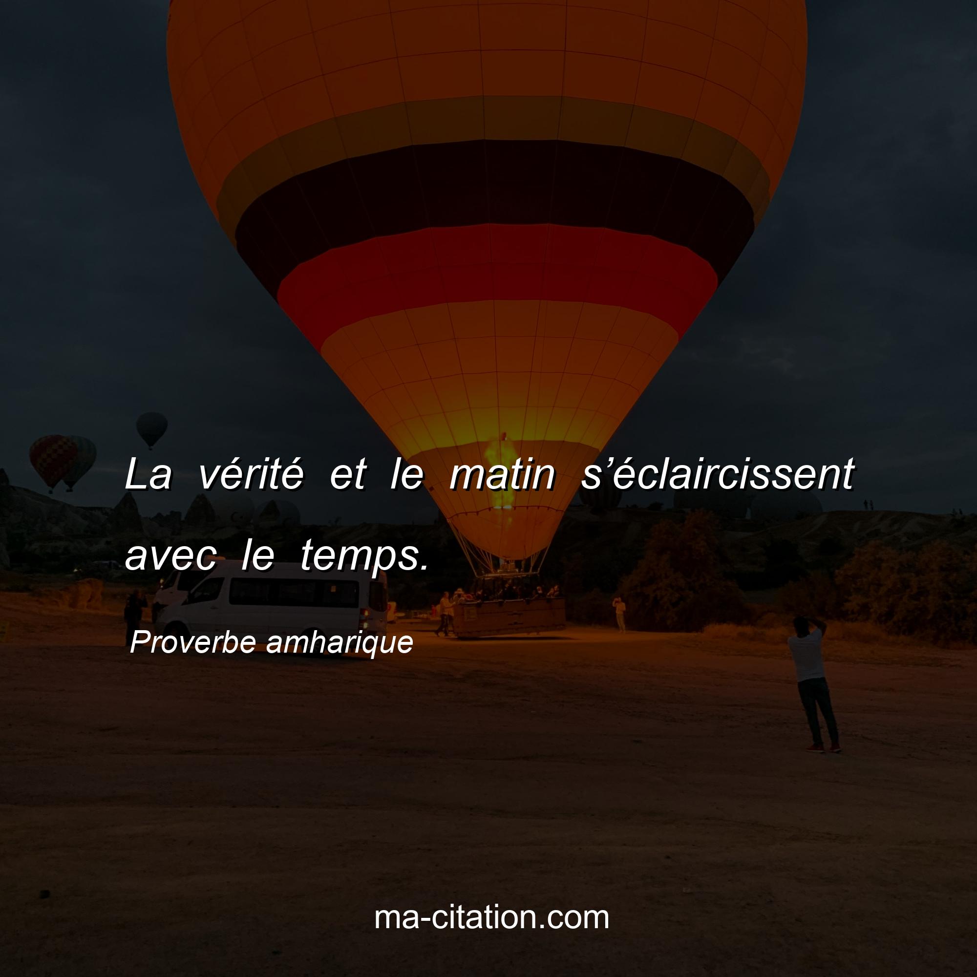 Proverbe amharique sur la vie :La vérité et le matin s’éclaircissent avec le temps.