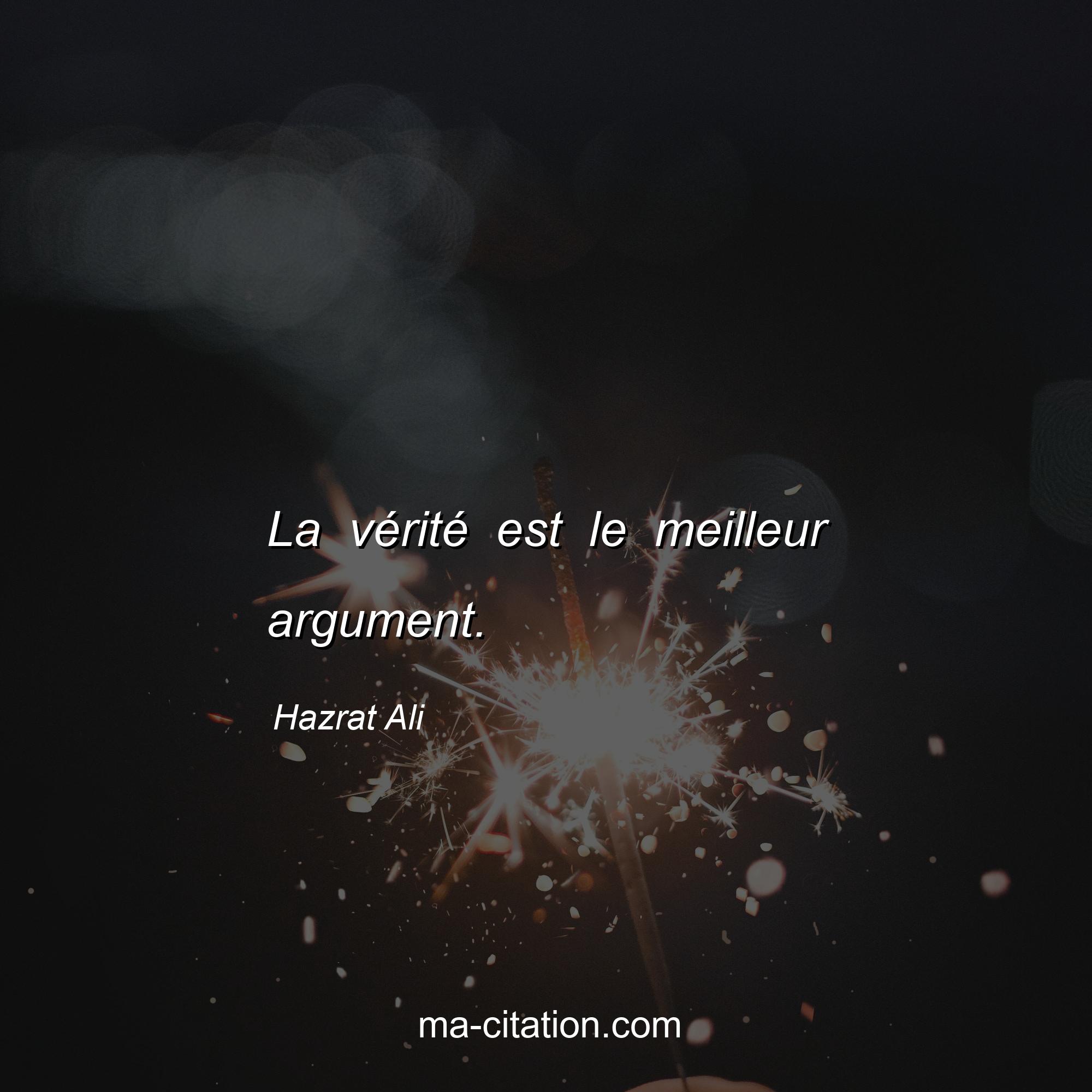 Hazrat Ali est l'auteur de la citation sur la vie "La vérité est le meilleur argument.".
