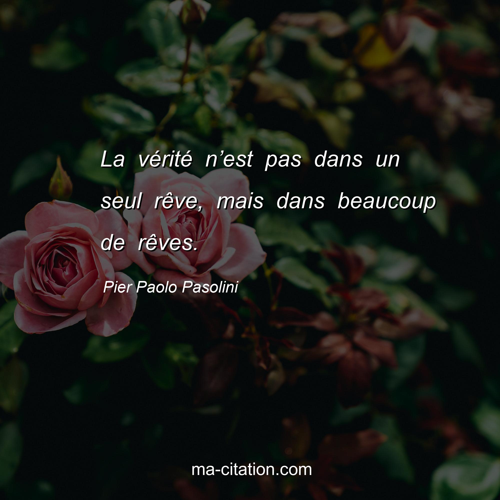 Citation sur la vie de Pier Paolo Pasolini :La vérité n’est pas dans un seul rêve, mais dans beaucoup de rêves.