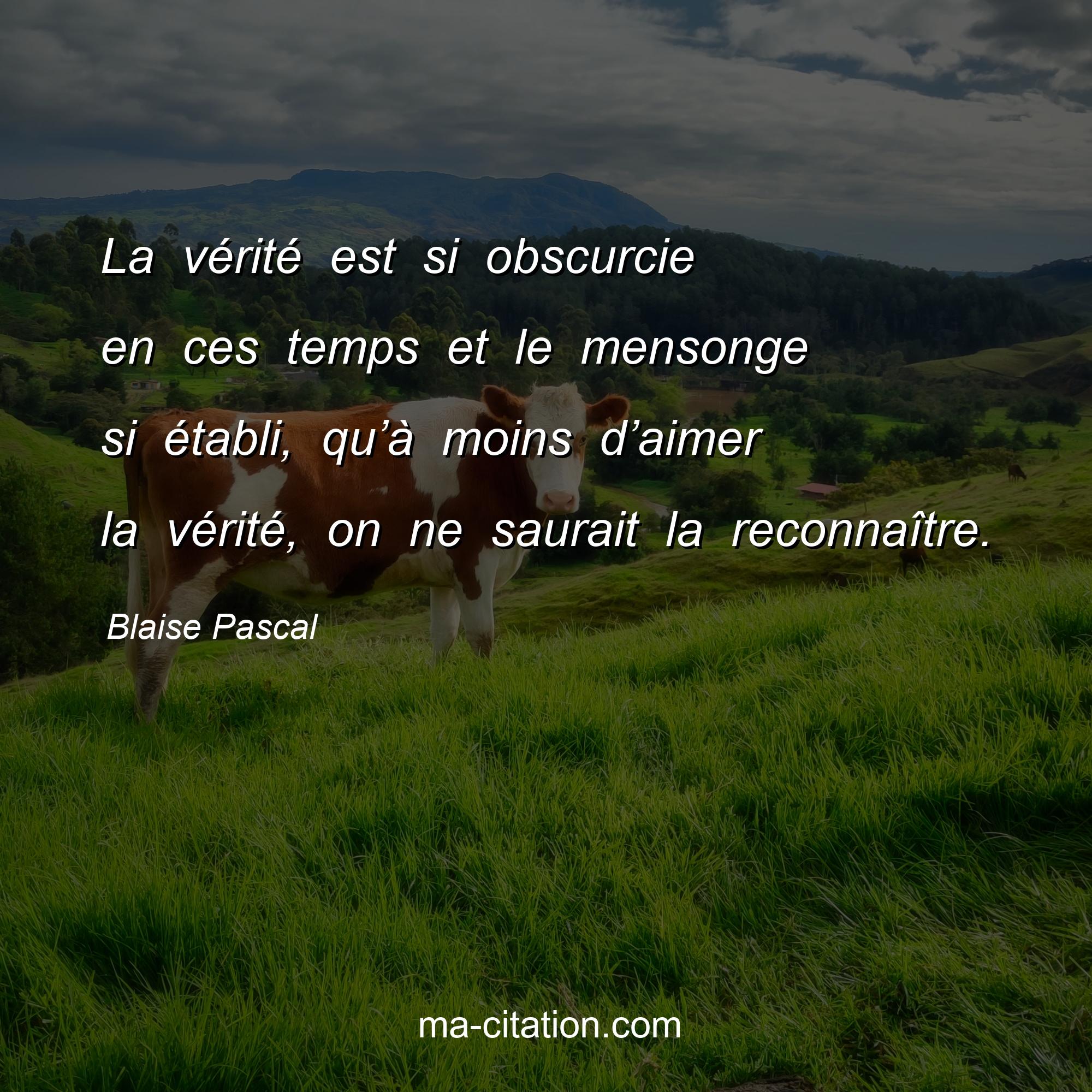 Citation sur la vie de Blaise Pascal :La vérité est si obscurcie en ces temps et le mensonge si établi, qu’à moins d’aimer la vérité, on ne saurait la reconnaître.