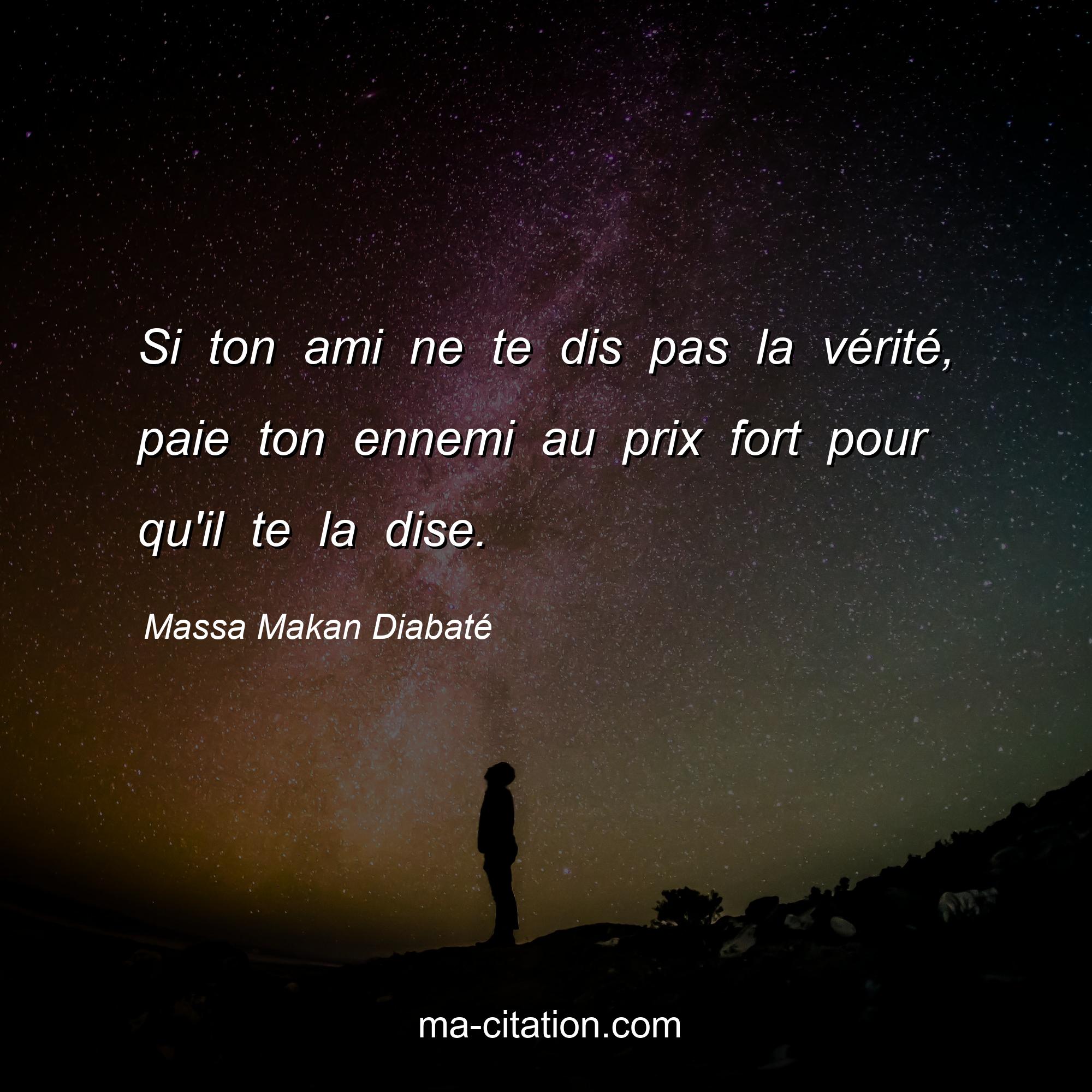 Massa Makan Diabaté est l'auteur de la citation sur la vie "Si ton ami ne te dis pas la vérité, paie ton ennemi au prix fort pour qu'il te la dise.".