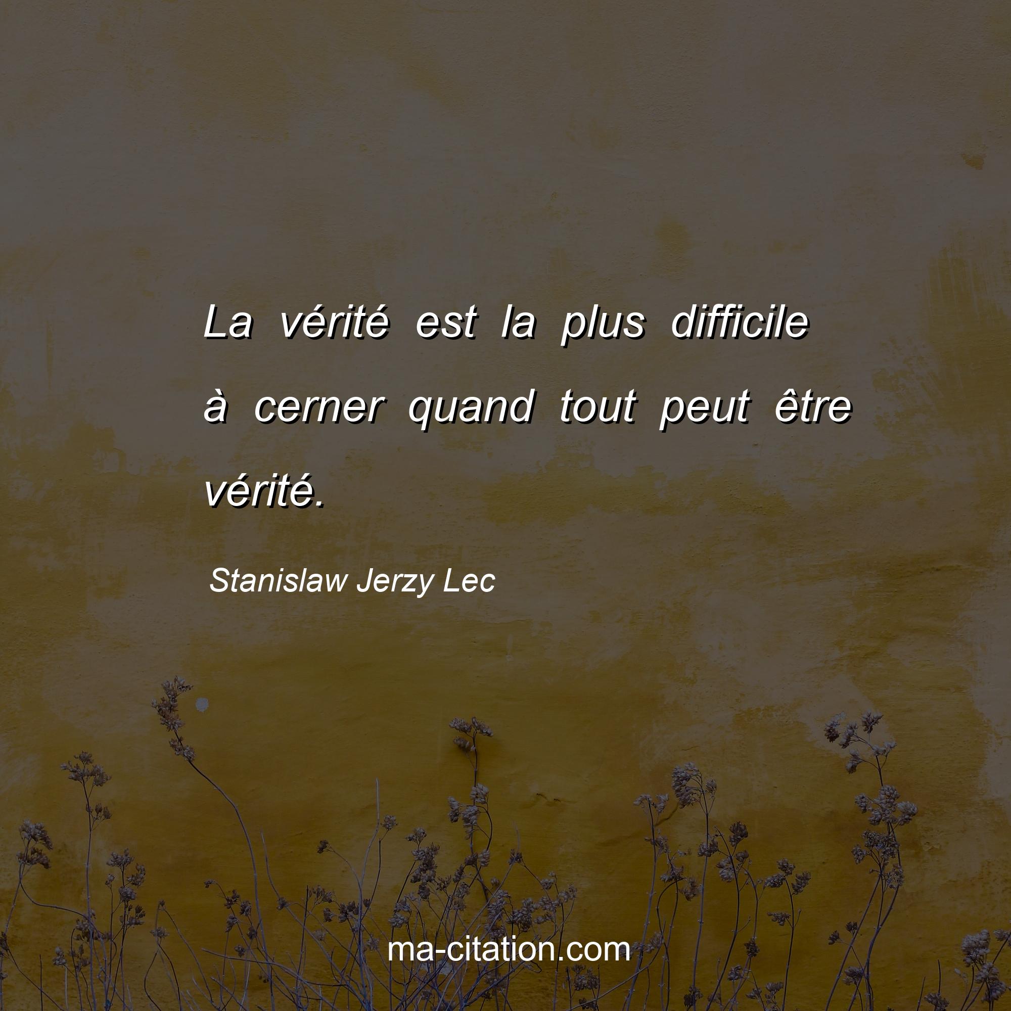 Citation sur la vie de Stanislaw Jerzy Lec :La vérité est la plus difficile à cerner quand tout peut être vérité.