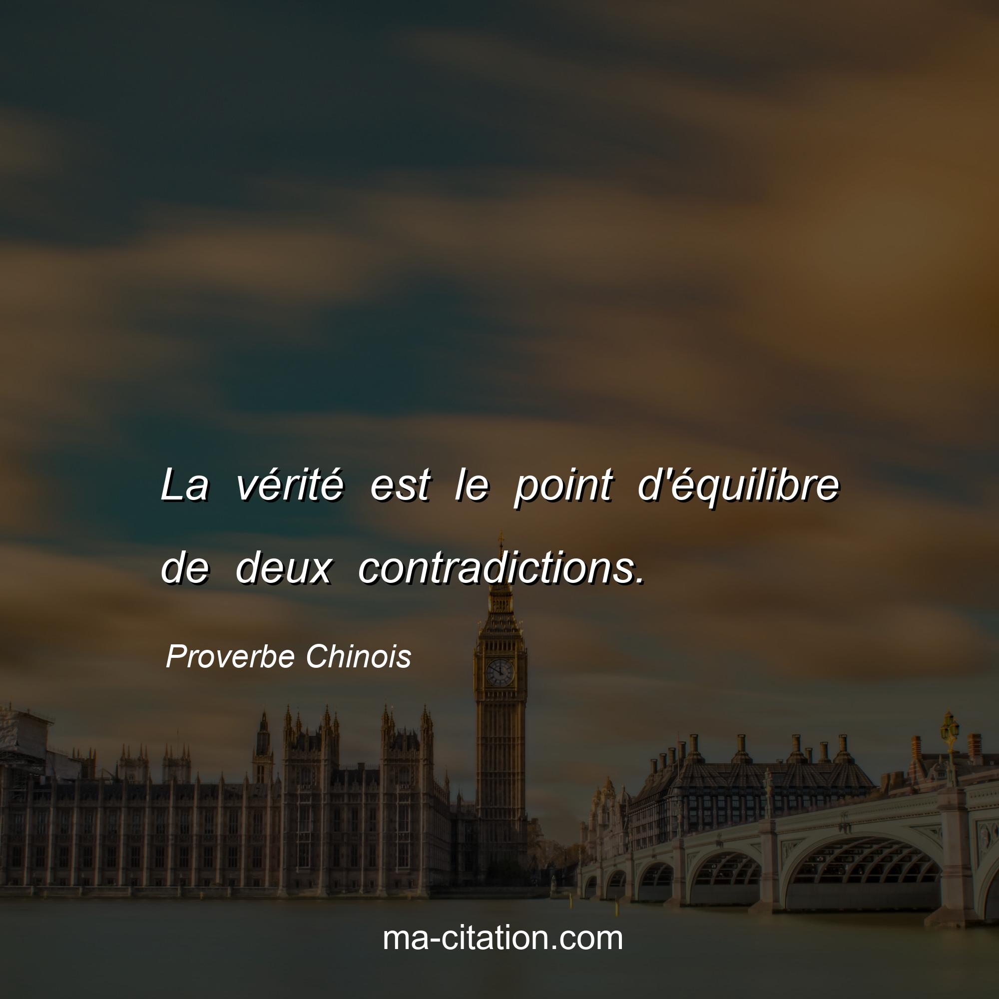 Proverbe Chinois sur la vie :La vérité est le point d'équilibre de deux contradictions.