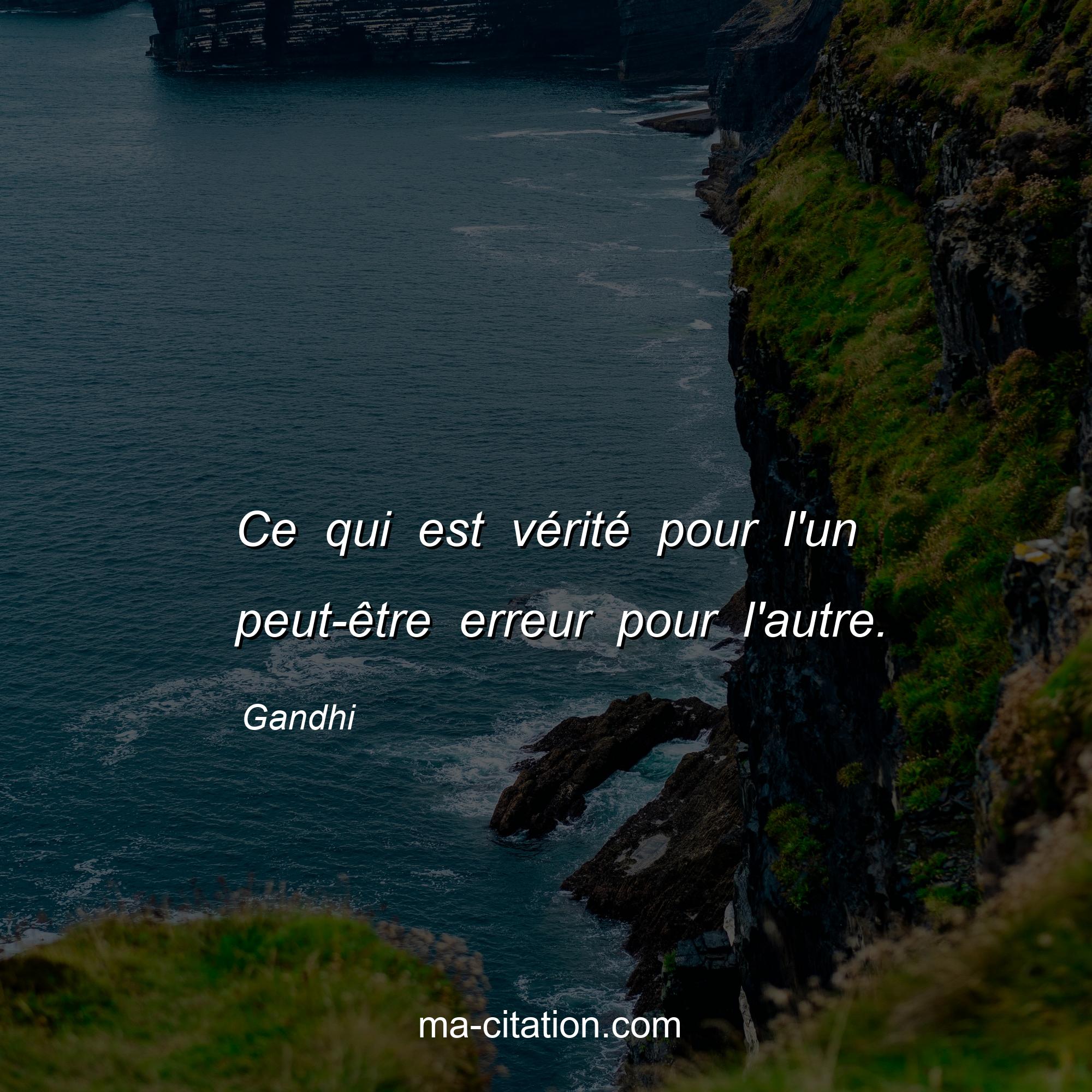 Citation sur la vie de Gandhi :Ce qui est vérité pour l'un peut-être erreur pour l'autre.