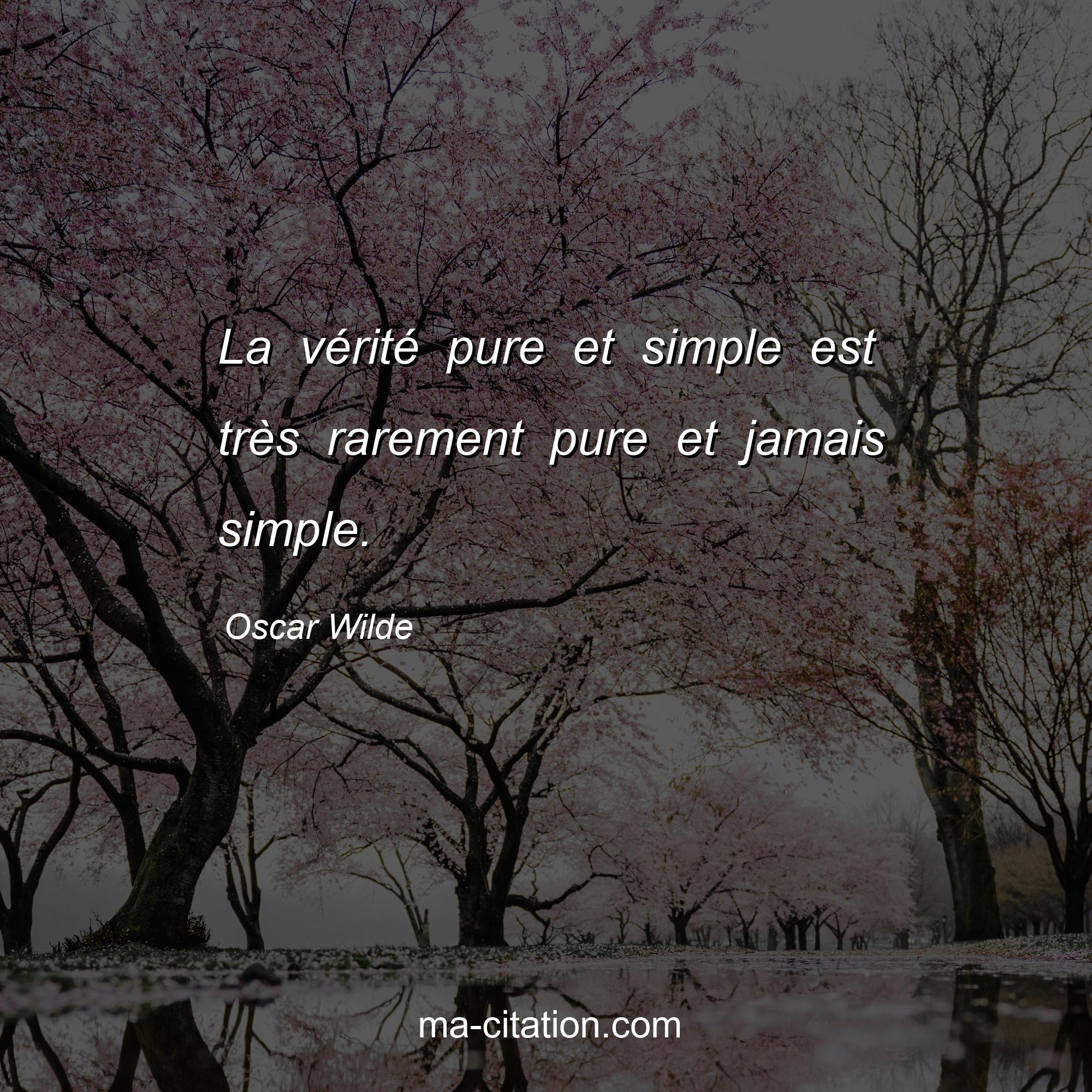 Citation sur la vie d'Oscar Wilde :La vérité pure et simple est très rarement pure et jamais simple.