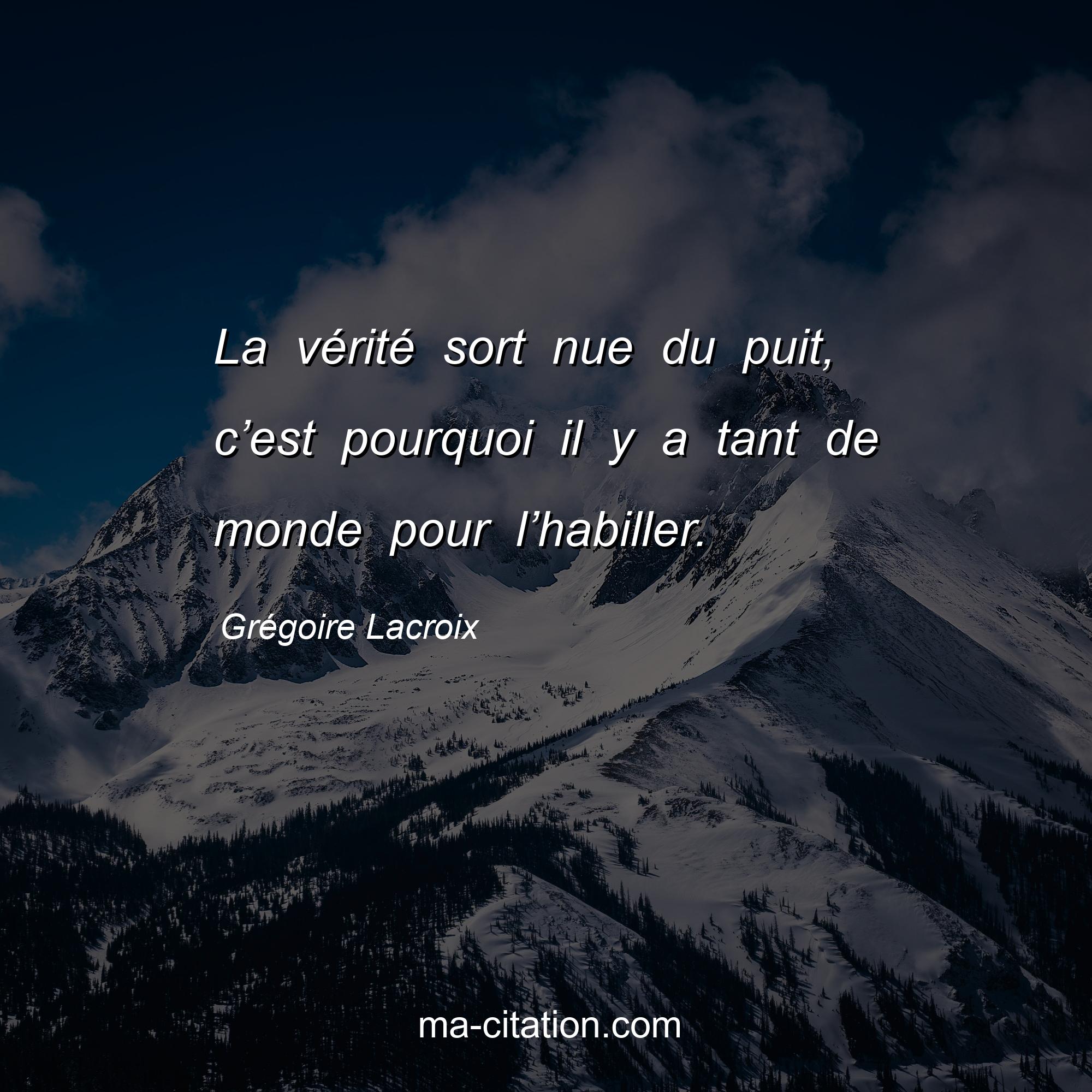 Grégoire Lacroix est l'auteur de la citation sur la vie "La vérité sort nue du puit, c’est pourquoi il y a tant de monde pour l’habiller.".