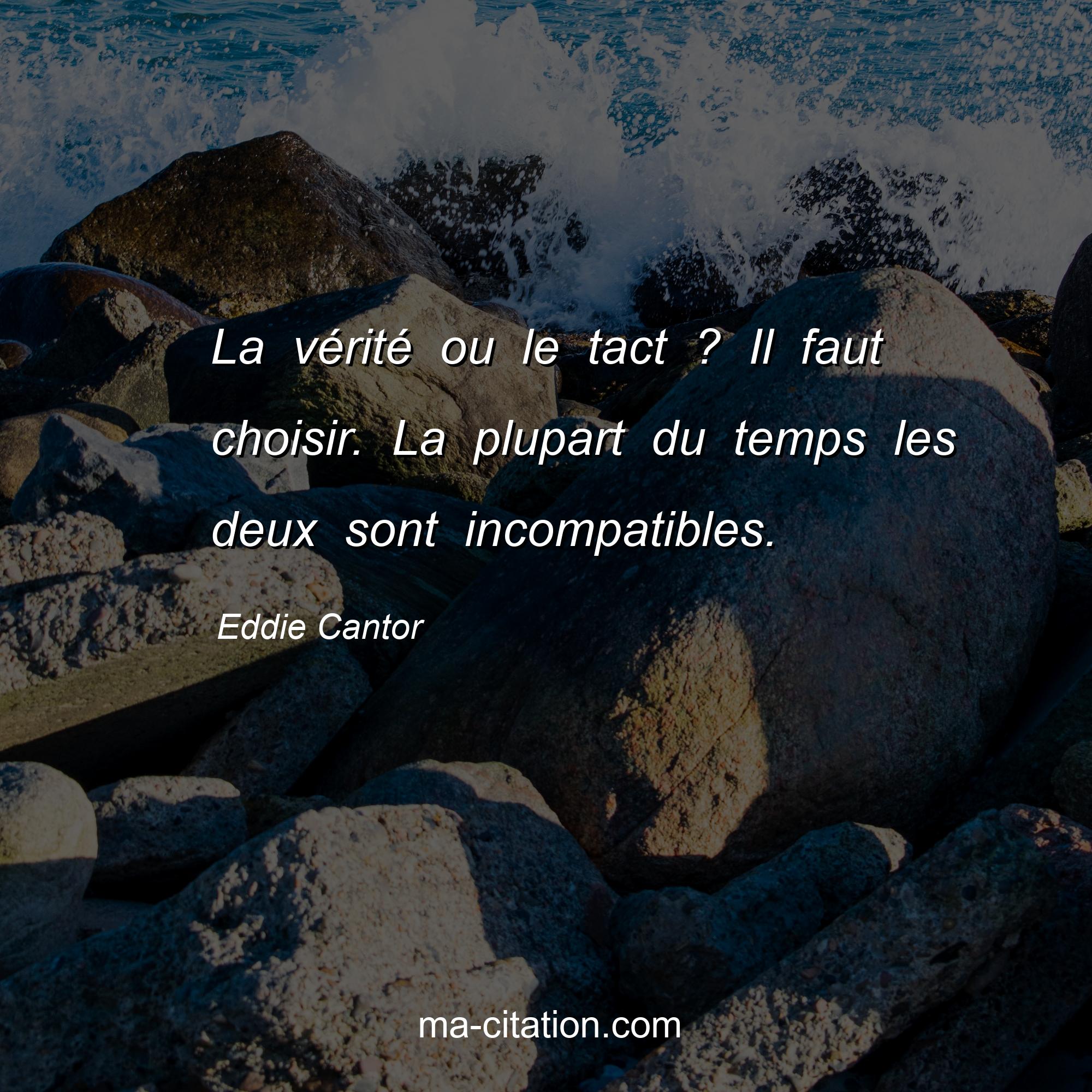 Citation sur la vie d'Eddie Cantor :La vérité ou le tact ? Il faut choisir. La plupart du temps les deux sont incompatibles.