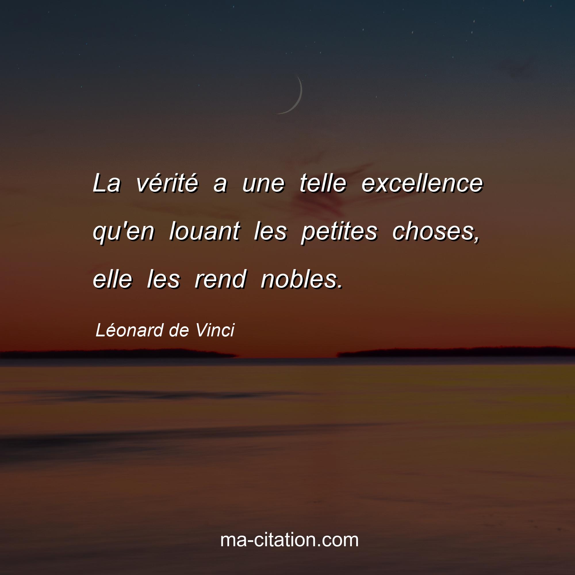 Citation sur la vie de Léonard de Vinci :La vérité a une telle excellence qu'en louant les petites choses, elle les rend nobles.
