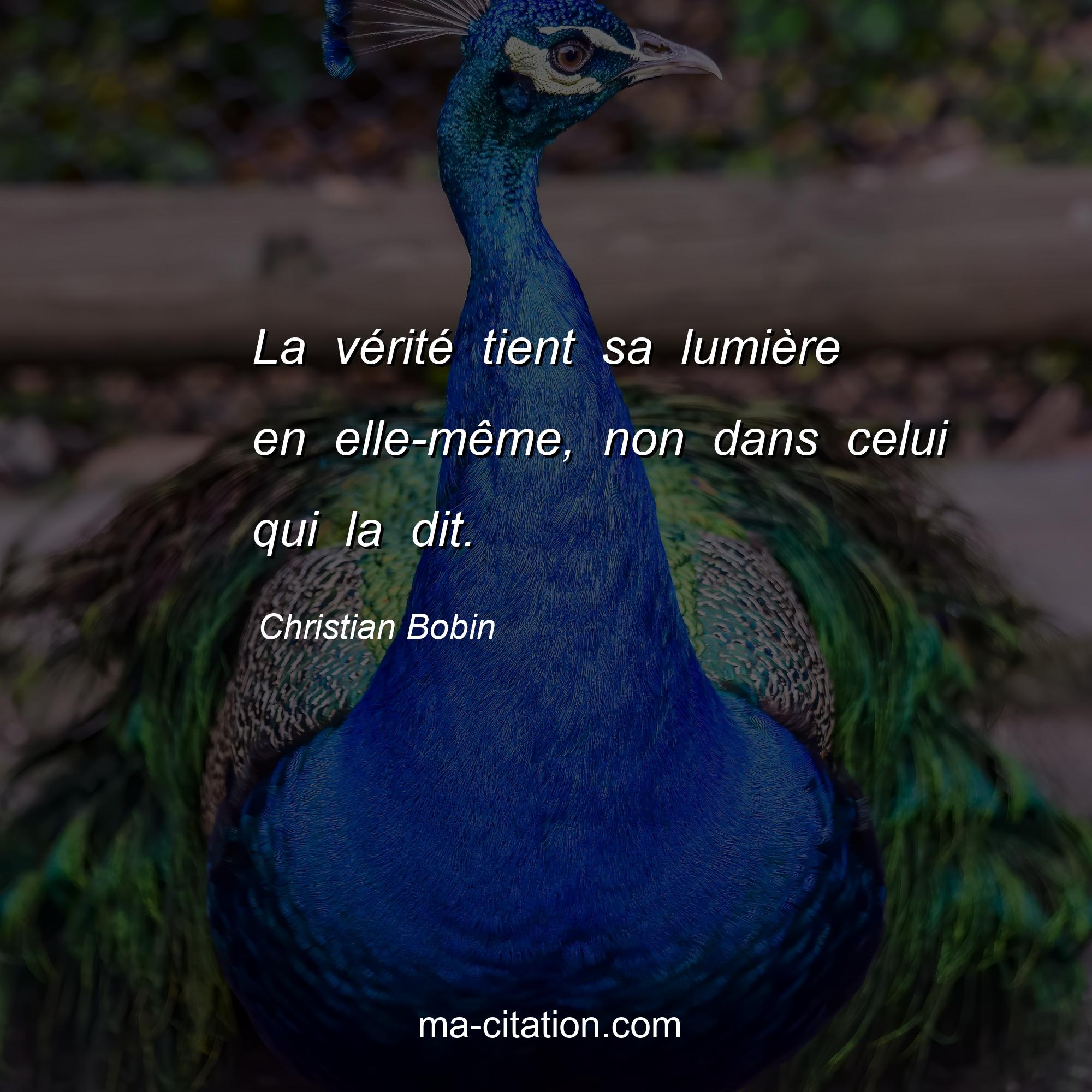 Citation sur la vie de Christian Bobin :La vérité tient sa lumière en elle-même, non dans celui qui la dit.