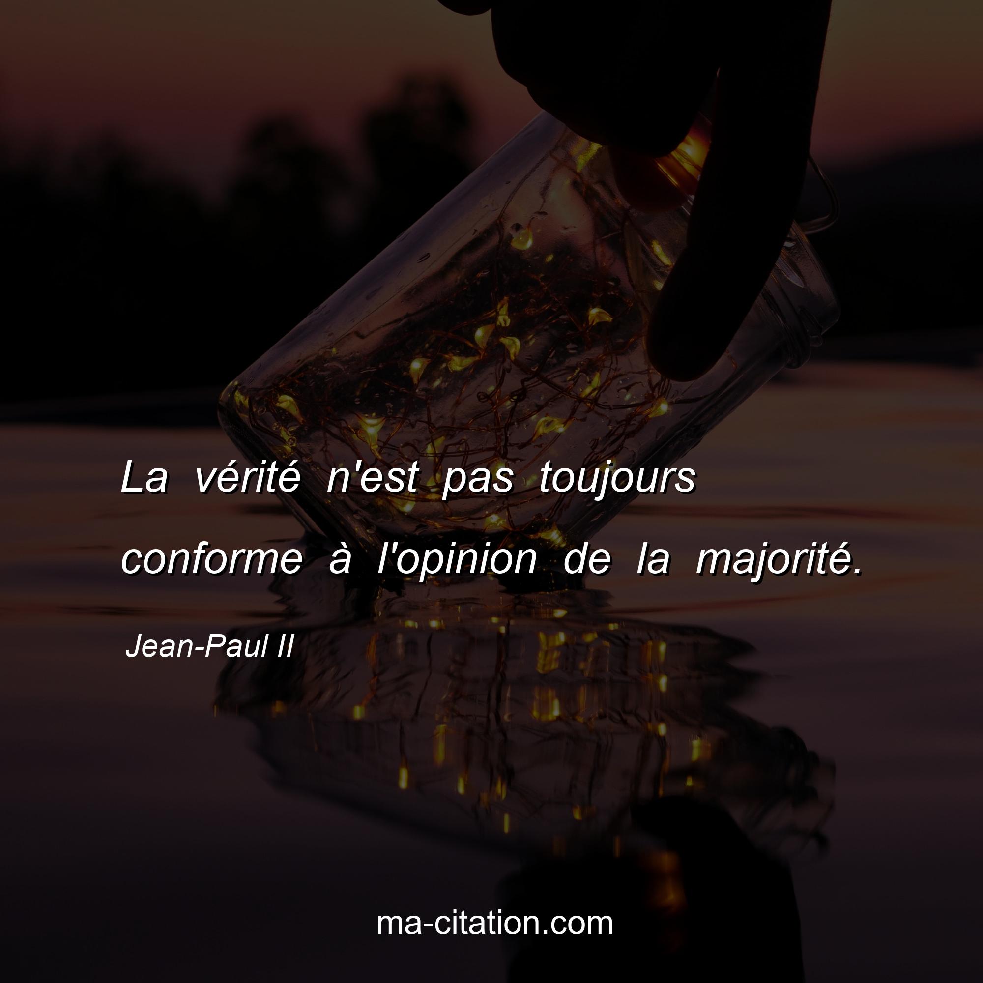 Jean-Paul II est l'auteur de la citation sur la vie "La vérité n'est pas toujours conforme à l'opinion de la majorité.".