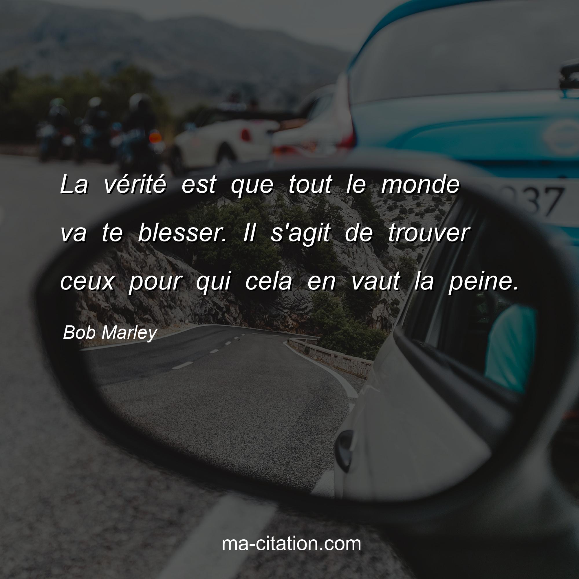 Citation sur la vie de Bob Marley :La vérité est que tout le monde va te blesser. Il s'agit de trouver ceux pour qui cela en vaut la peine.