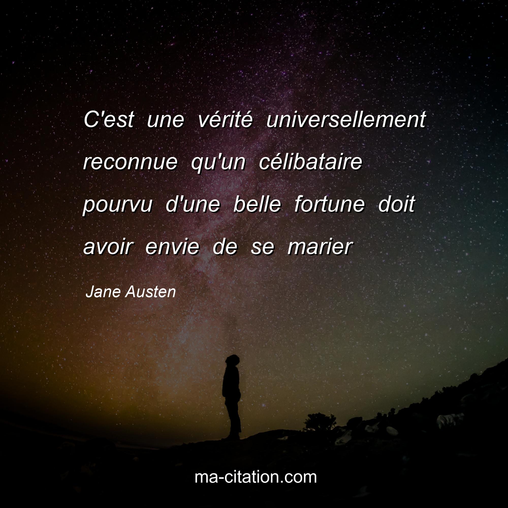 Citation sur la vie de Jane Austen :C'est une vérité universellement reconnue qu'un célibataire pourvu d'une belle fortune doit avoir envie de se marier