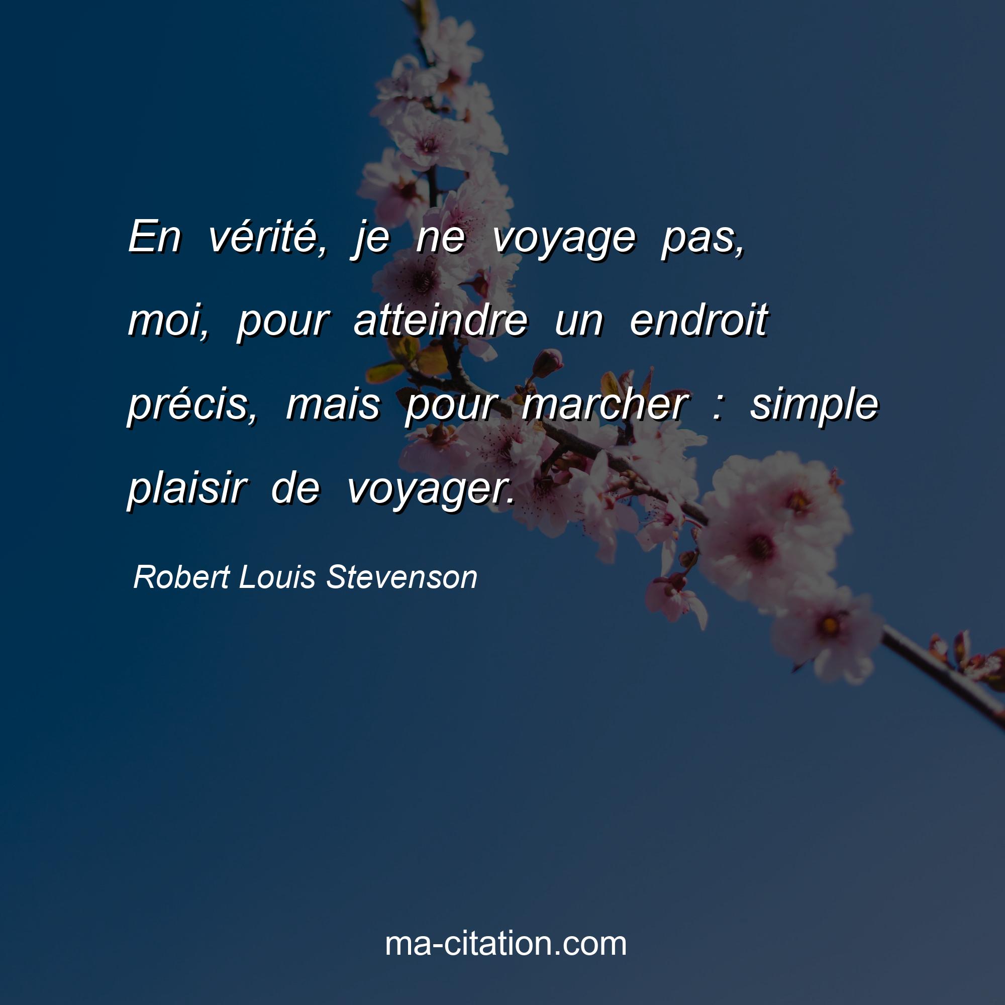 Citation sur la vie de Robert Louis Stevenson :En vérité, je ne voyage pas, moi, pour atteindre un endroit précis, mais pour marcher : simple plaisir de voyager.
