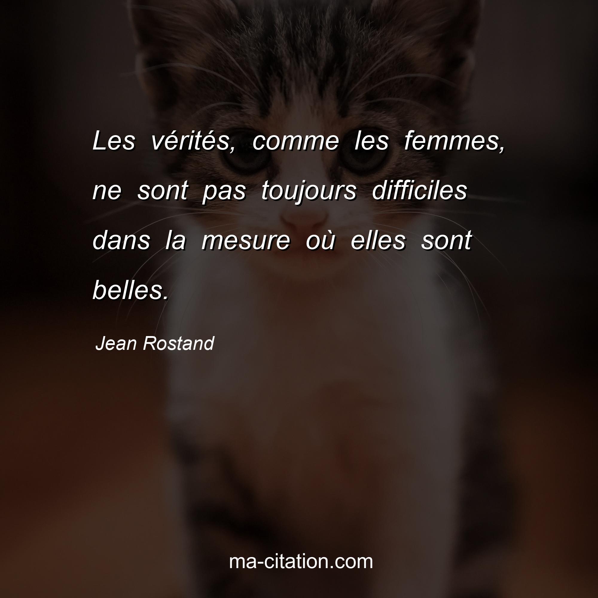 Citation sur la vie de Jean Rostand :Les vérités, comme les femmes, ne sont pas toujours difficiles dans la mesure où elles sont belles.