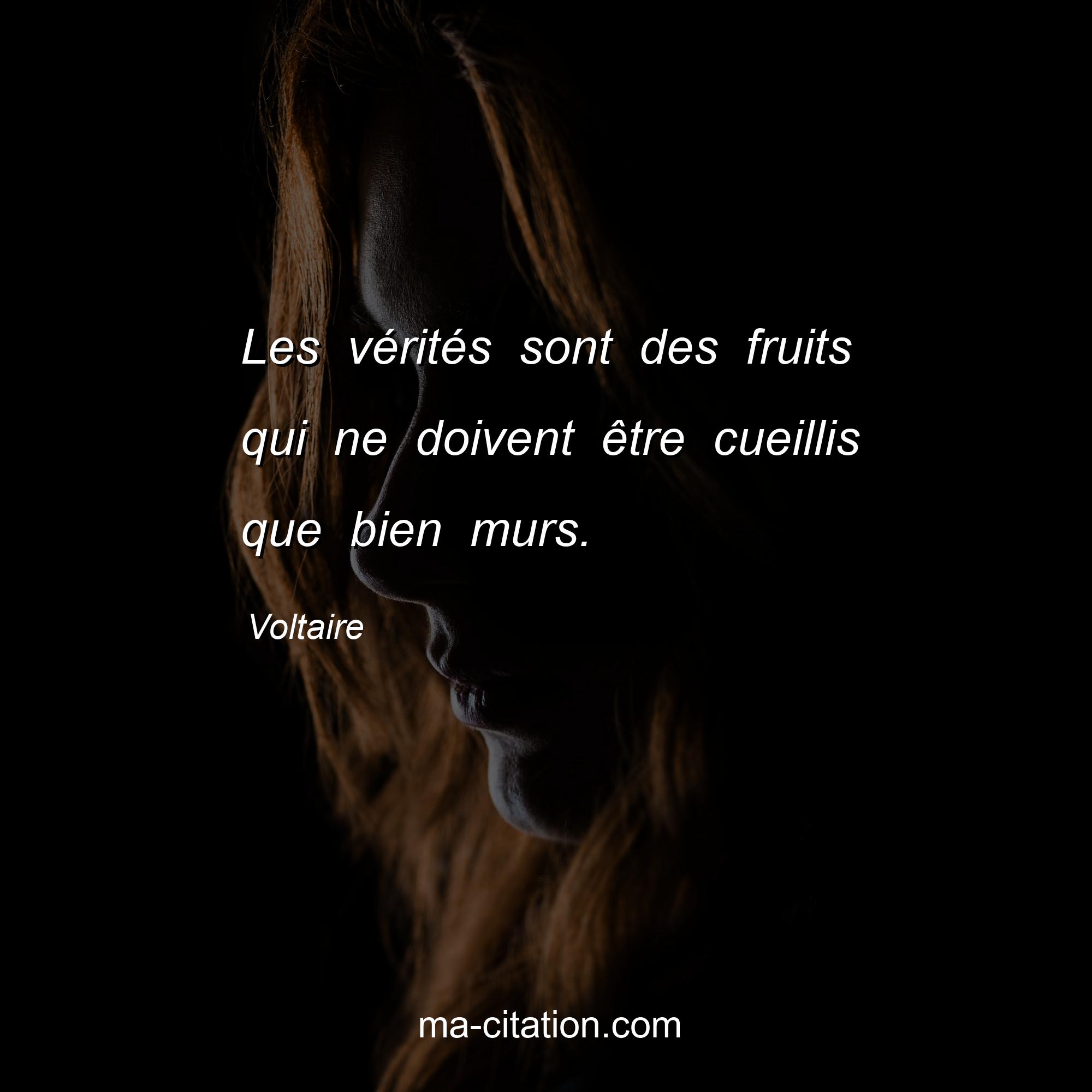 Citation sur la vie de Voltaire :Les vérités sont des fruits qui ne doivent être cueillis que bien murs.