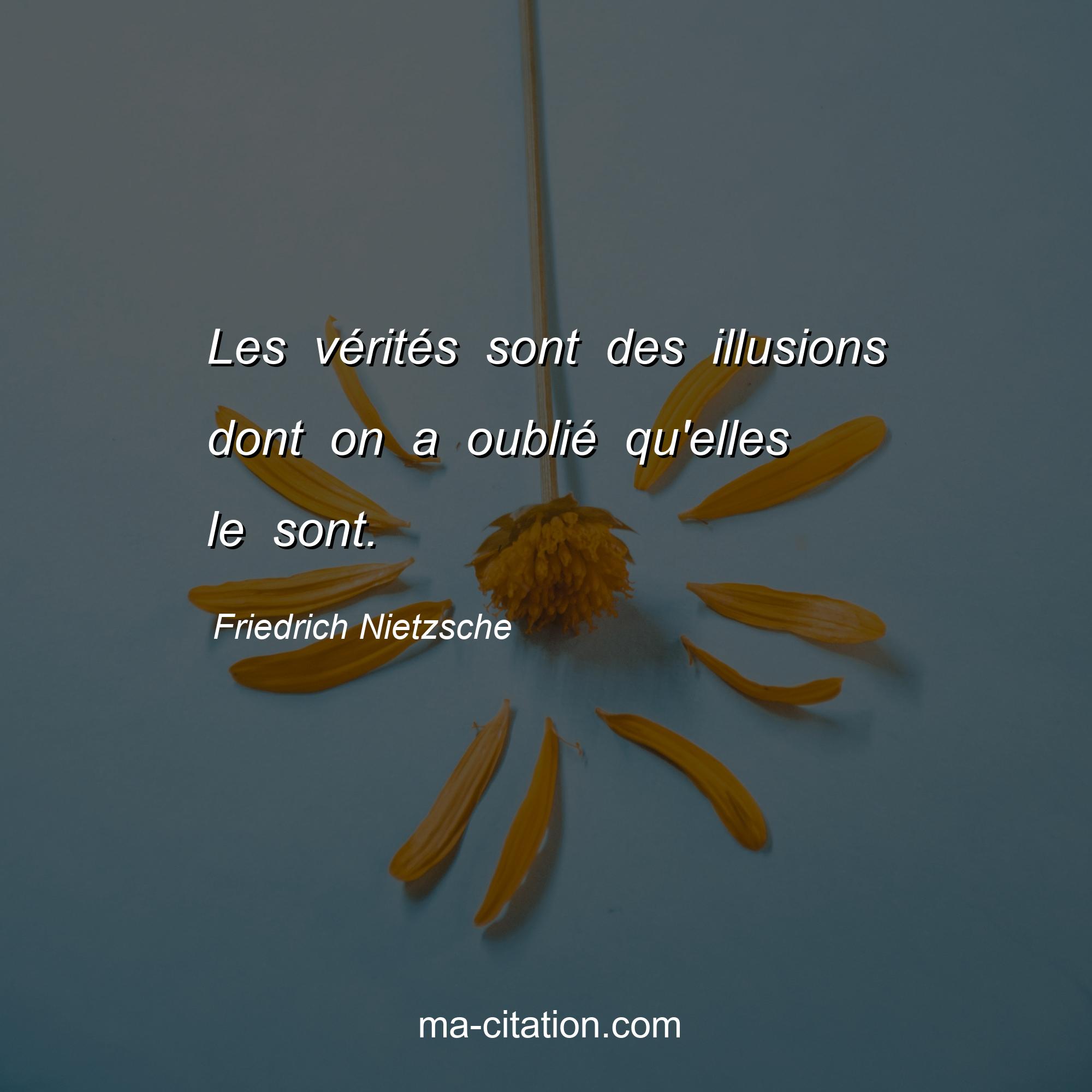 Citation sur la vie de Friedrich Nietzsche :Les vérités sont des illusions dont on a oublié qu'elles le sont.