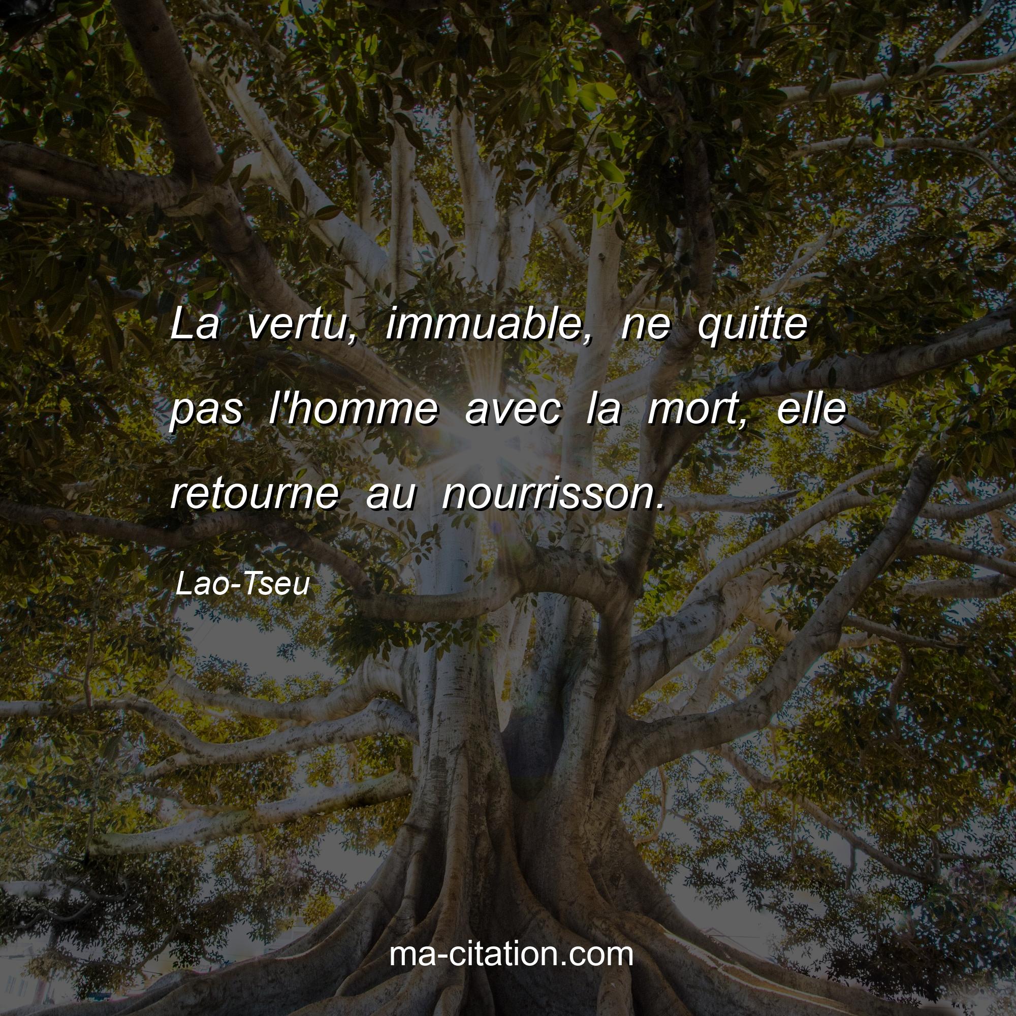 Citation sur la vie de Lao-Tseu :La vertu, immuable, ne quitte pas l'homme avec la mort, elle retourne au nourrisson.