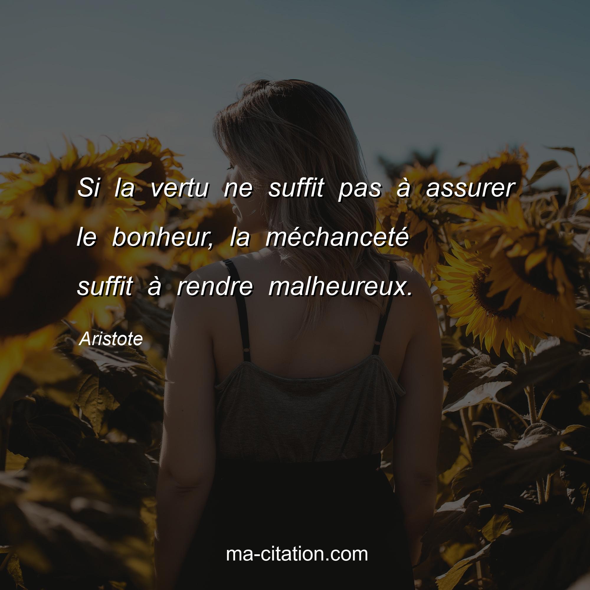 Citation sur la vie d'Aristote :Si la vertu ne suffit pas à assurer le bonheur, la méchanceté suffit à rendre malheureux.