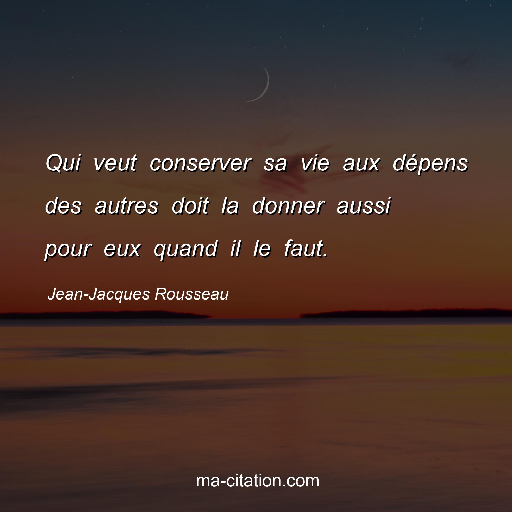 Citation sur la vie de Jean-Jacques Rousseau :Qui veut conserver sa vie aux dépens des autres doit la donner aussi pour eux quand il le faut.