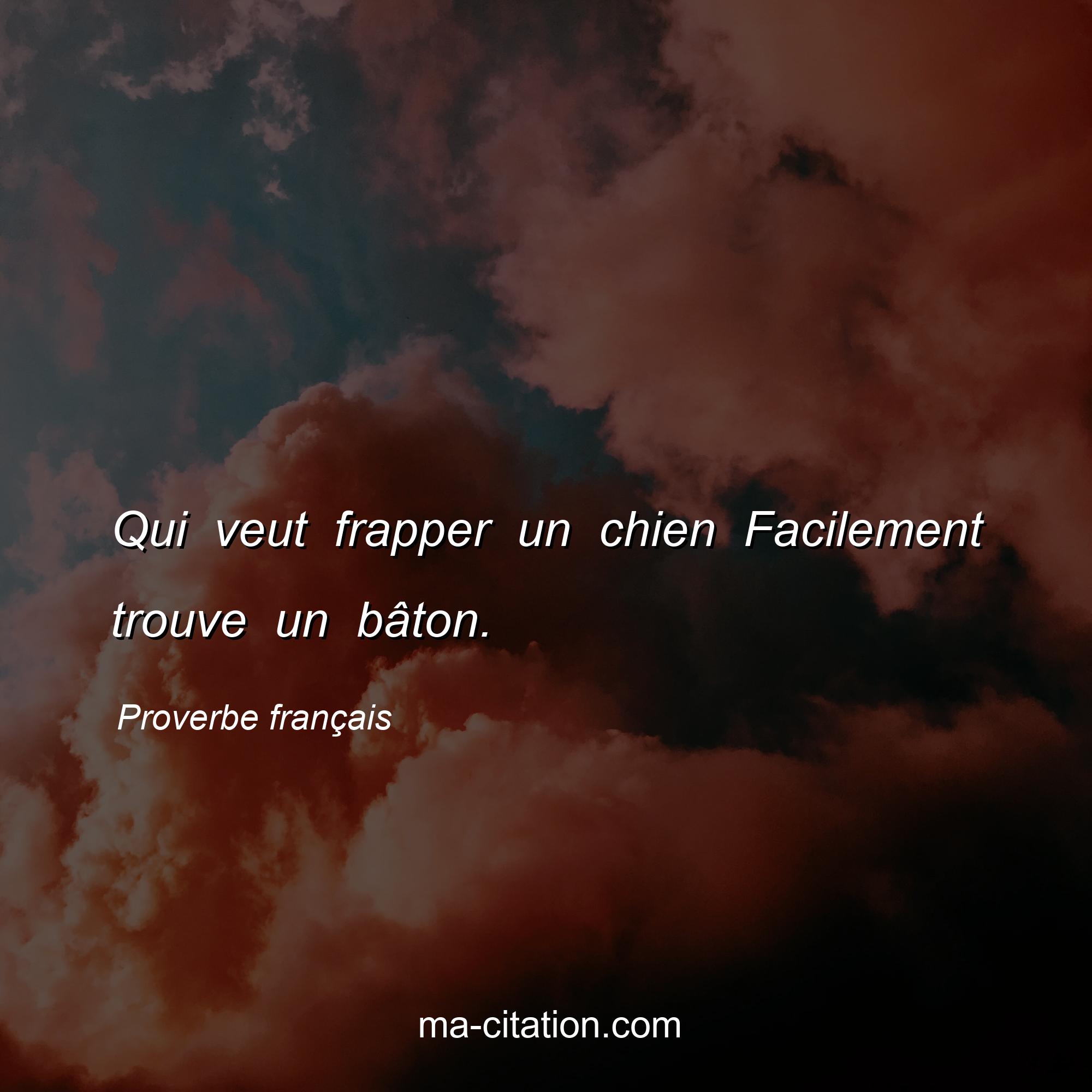 Proverbe français sur la vie :Qui veut frapper un chien Facilement trouve un bâton.
