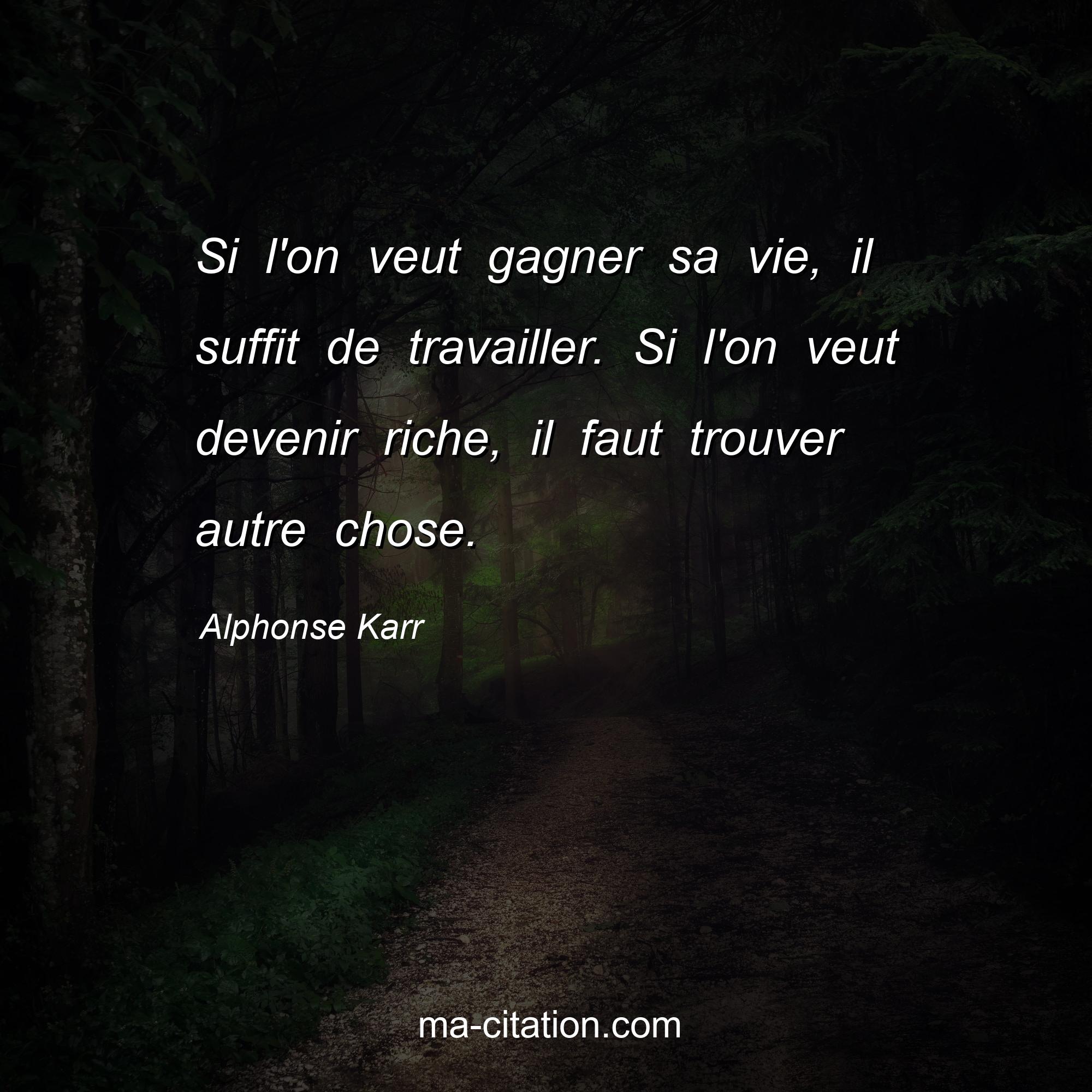 Citation sur la vie d'Alphonse Karr :Si l'on veut gagner sa vie, il suffit de travailler. Si l'on veut devenir riche, il faut trouver autre chose.