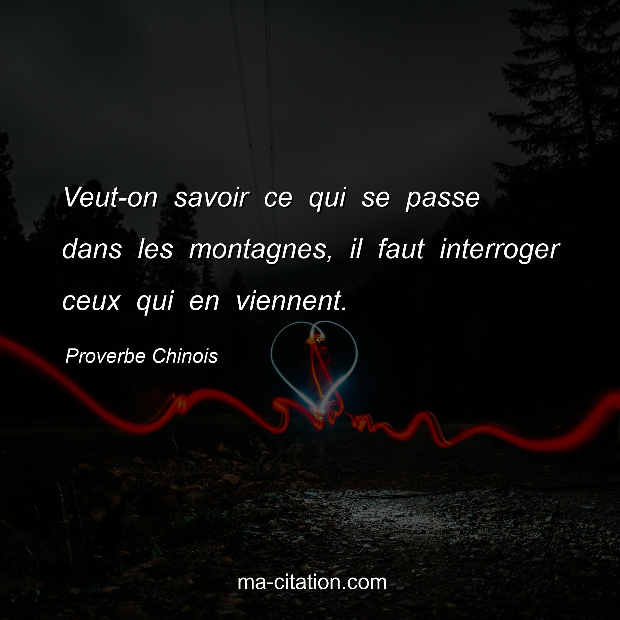 Proverbe Chinois sur la vie :Veut-on savoir ce qui se passe dans les montagnes, il faut interroger ceux qui en viennent.