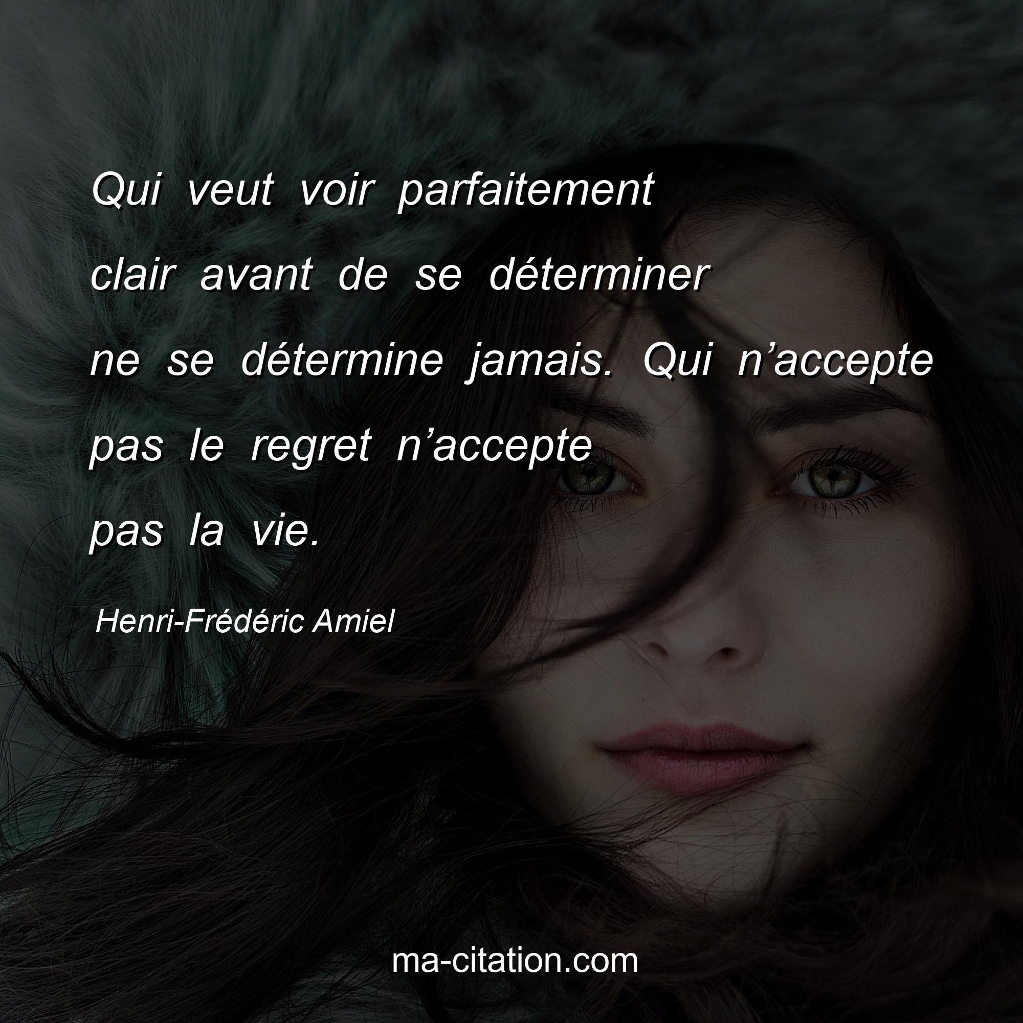 Citation sur la vie de Henri-Frédéric Amiel :Qui veut voir parfaitement clair avant de se déterminer ne se détermine jamais. Qui n’accepte pas le regret n’accepte pas la vie.