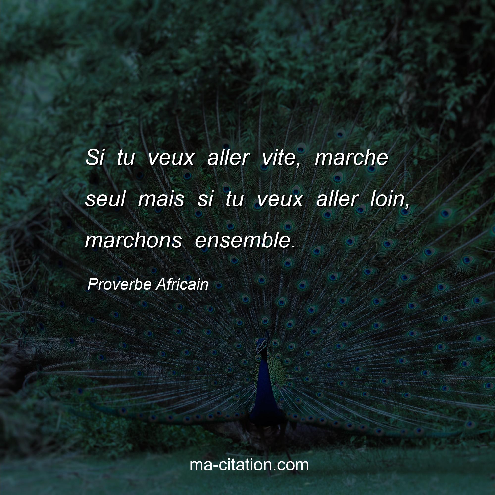 Proverbe Africain sur la vie :Si tu veux aller vite, marche seul mais si tu veux aller loin, marchons ensemble.