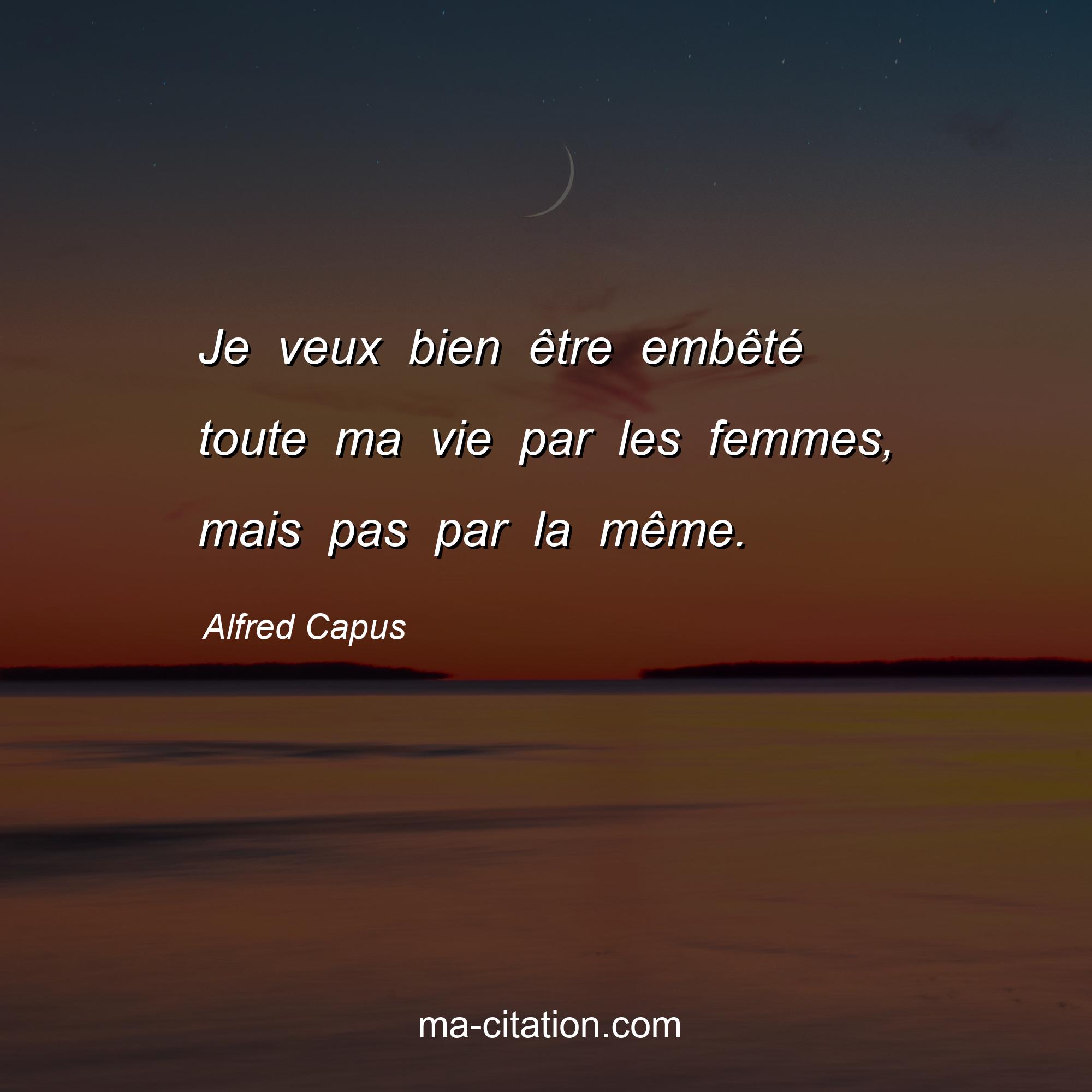 Citation sur la vie d'Alfred Capus :Je veux bien être embêté toute ma vie par les femmes, mais pas par la même.