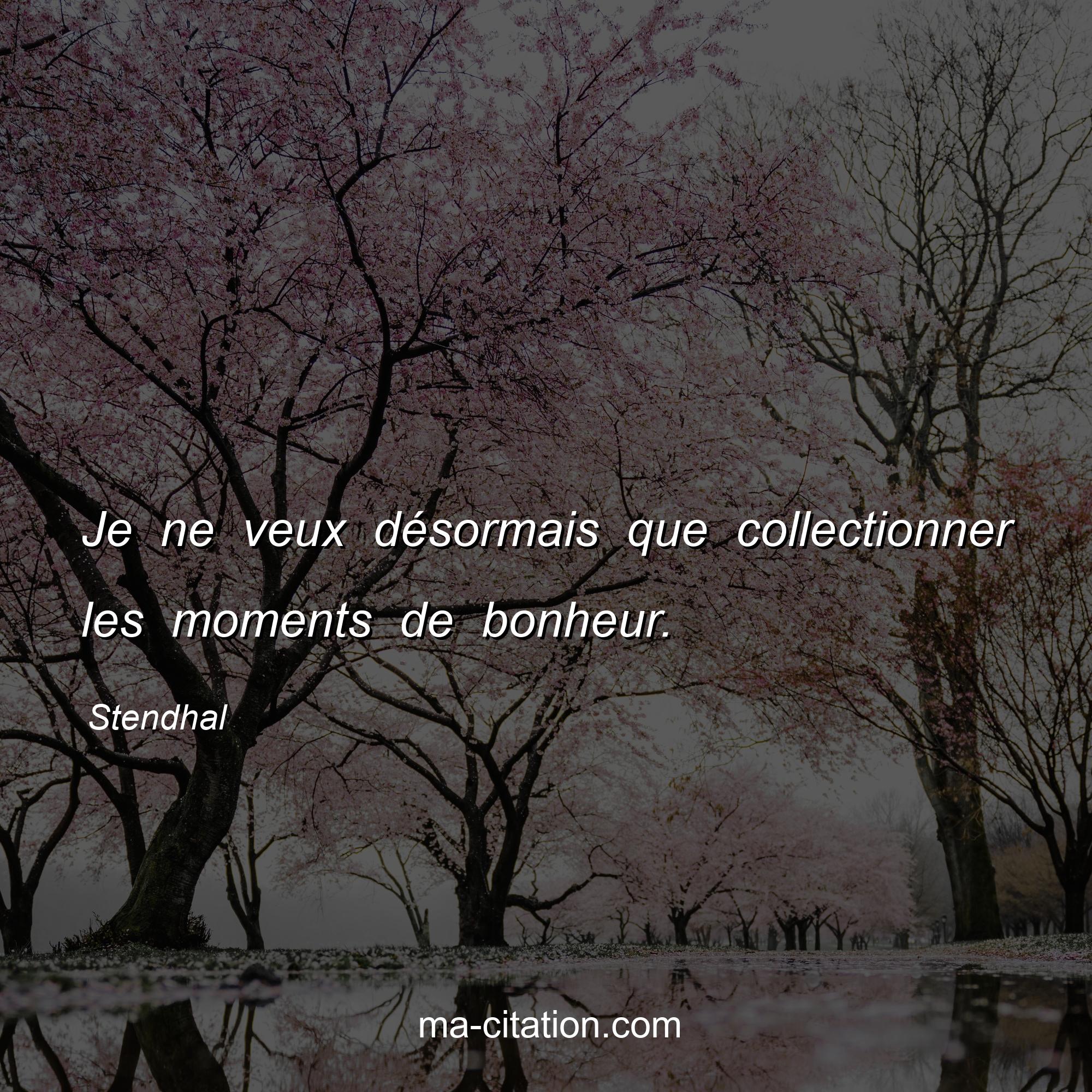 Citation sur la vie de Stendhal :Je ne veux désormais que collectionner les moments de bonheur.