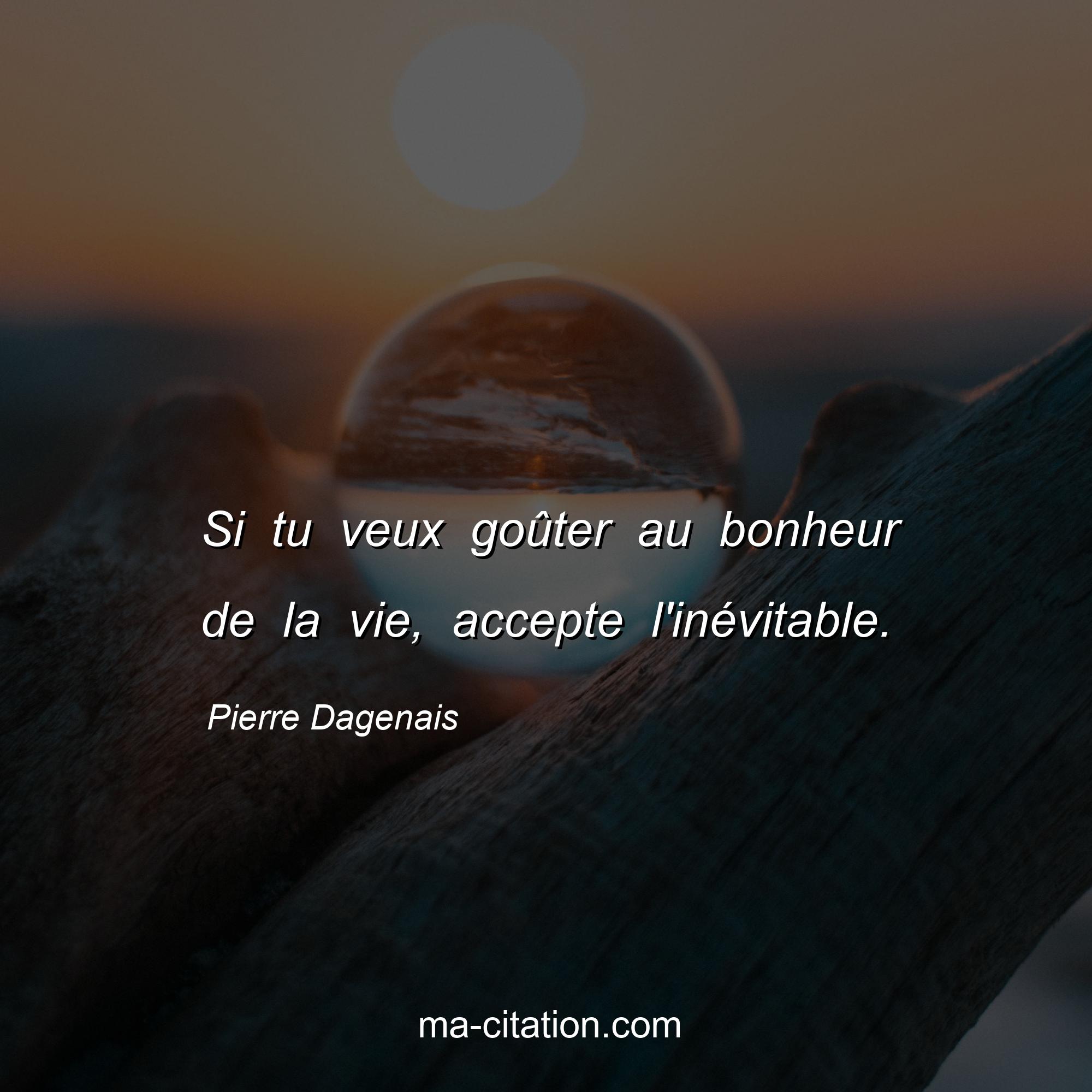 Pierre Dagenais est l'auteur de la citation sur la vie "Si tu veux goûter au bonheur de la vie, accepte l'inévitable.".