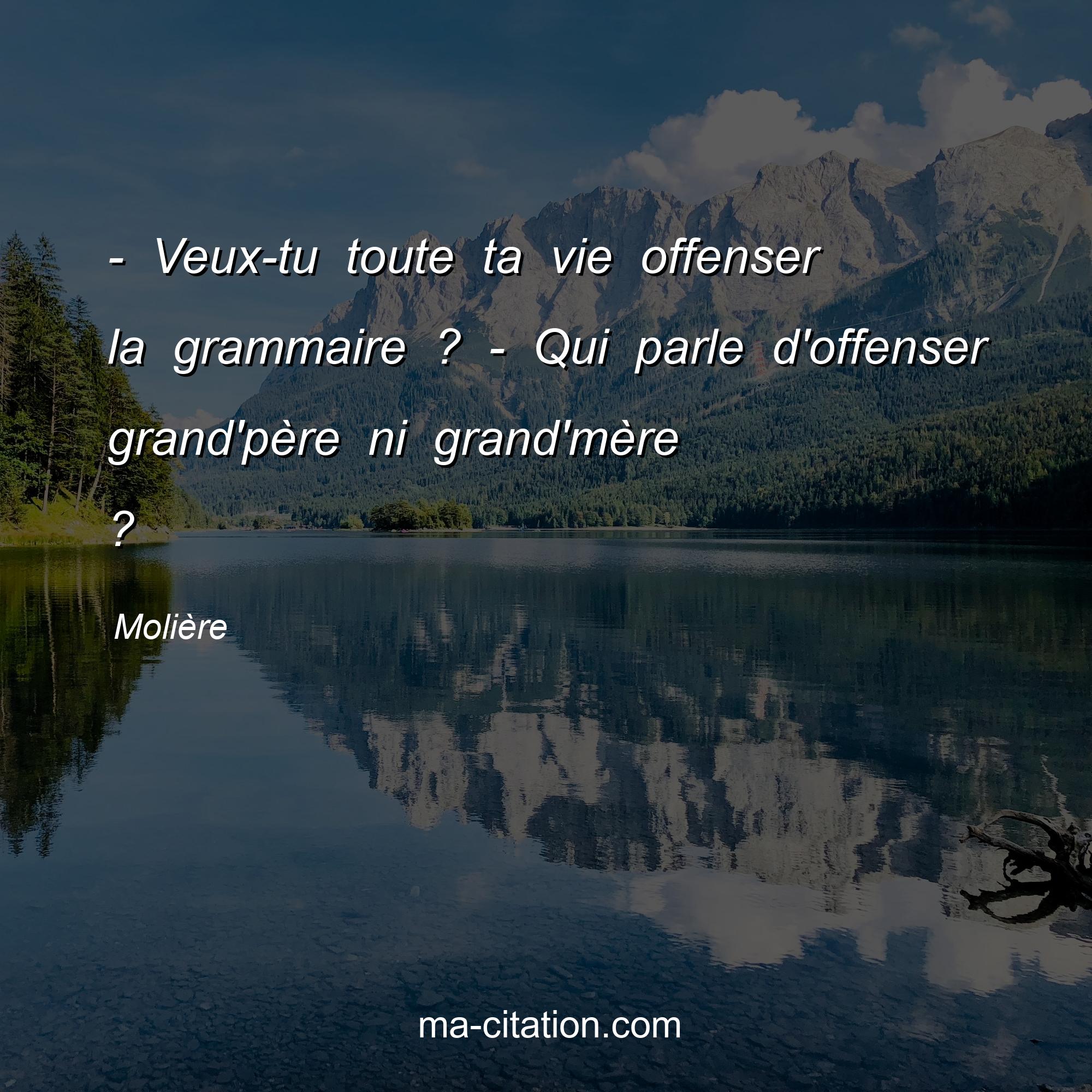Citation sur la vie de Molière :- Veux-tu toute ta vie offenser la grammaire ? - Qui parle d'offenser grand'père ni grand'mère ?