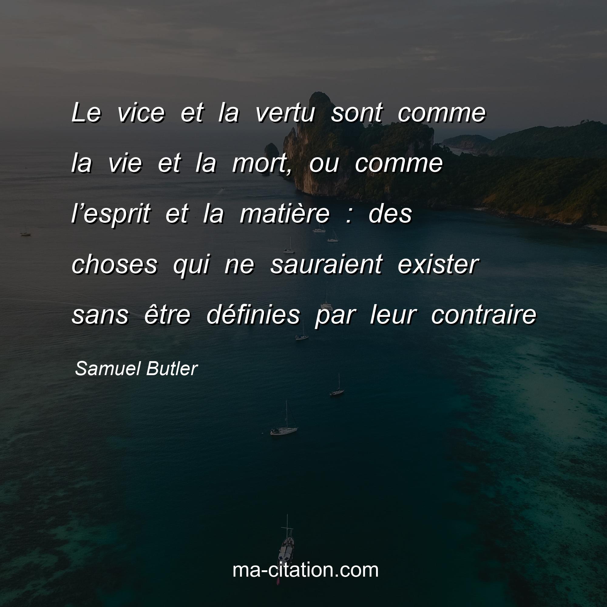 Citation sur la vie de Samuel Butler :Le vice et la vertu sont comme la vie et la mort, ou comme l’esprit et la matière : des choses qui ne sauraient exister sans être définies par leur contraire
