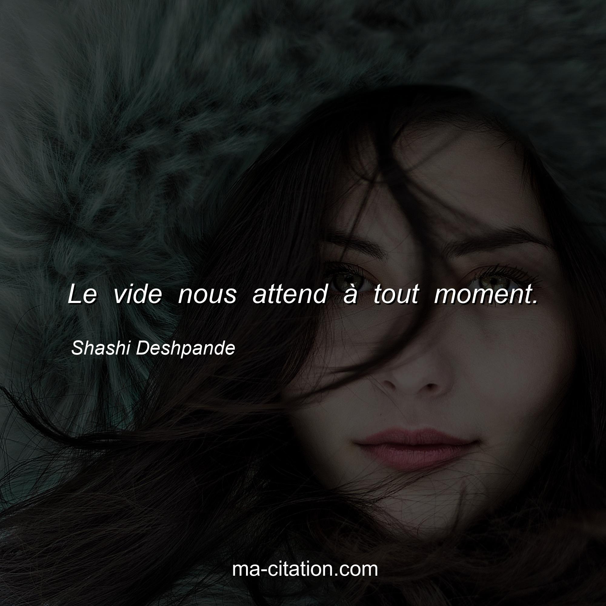 Shashi Deshpande est l'auteur de la citation sur la vie "Le vide nous attend à tout moment.".