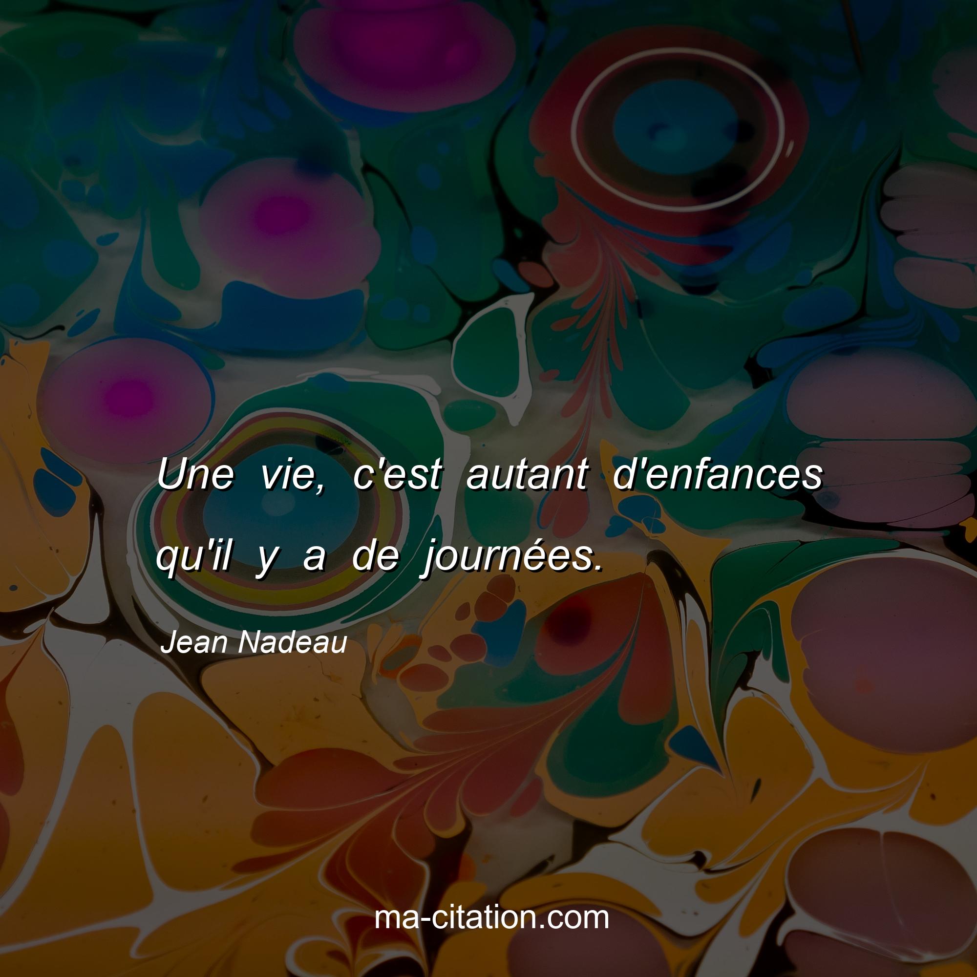 Jean Nadeau est l'auteur de la citation sur la vie "Une vie, c'est autant d'enfances qu'il y a de journées.".