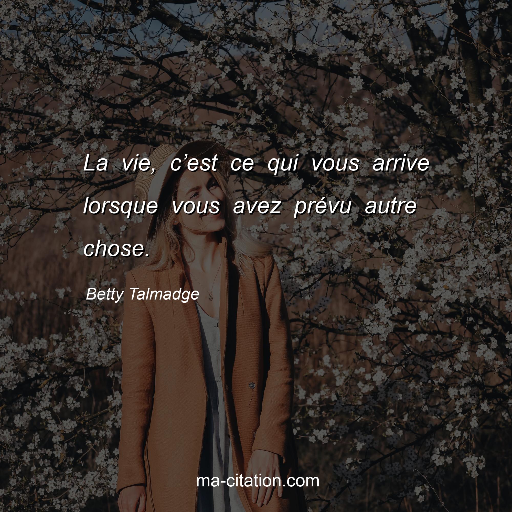 Citation sur la vie de Betty Talmadge :La vie, c’est ce qui vous arrive lorsque vous avez prévu autre chose.
