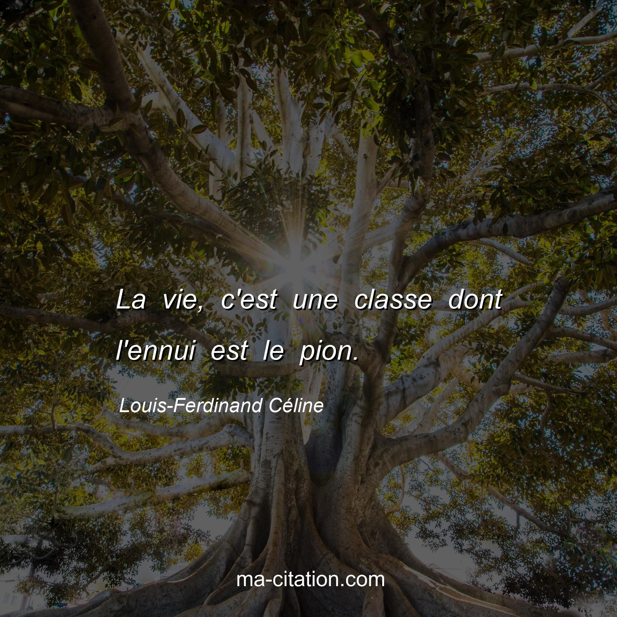 Louis-Ferdinand Céline est l'auteur de la citation sur la vie "La vie, c'est une classe dont l'ennui est le pion.".