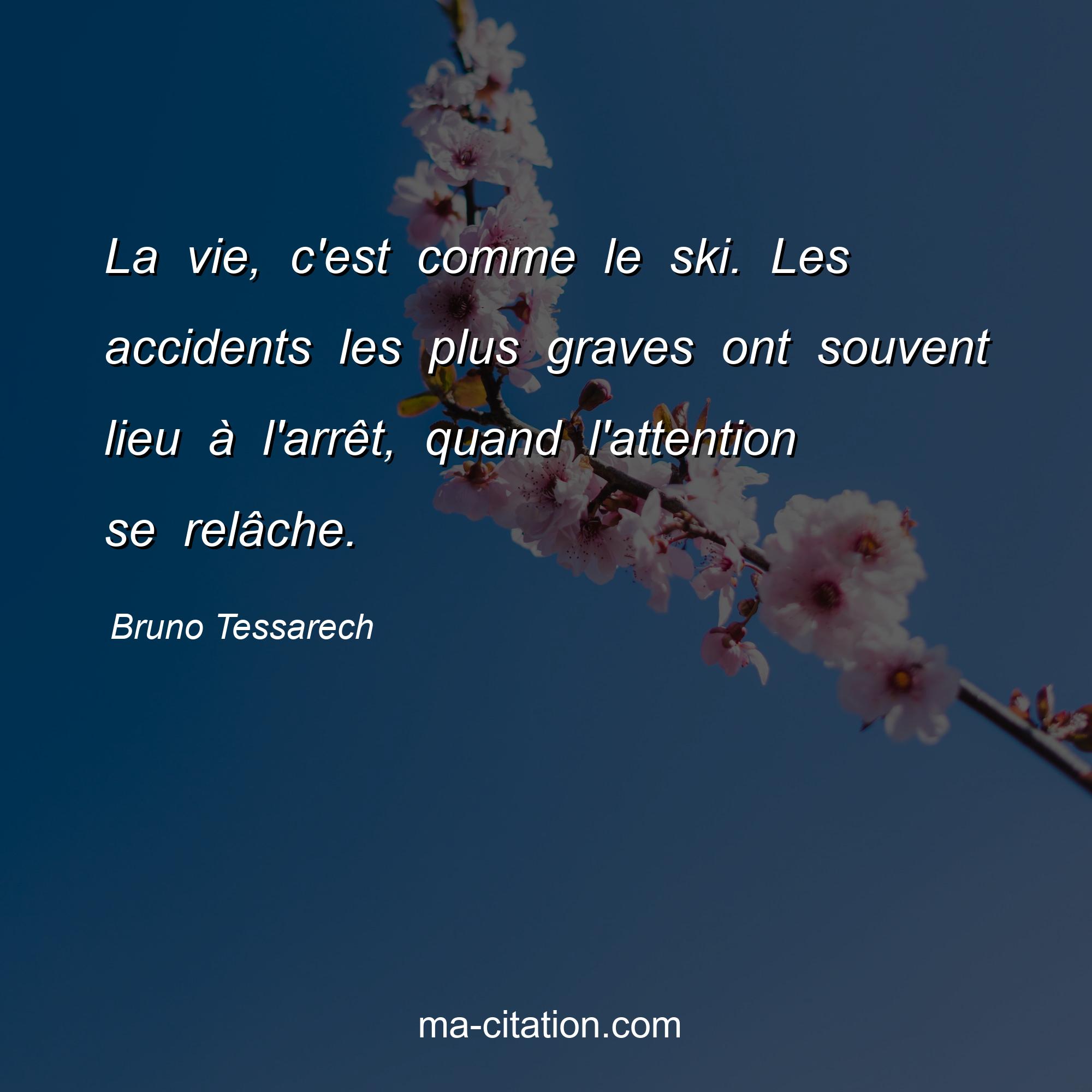 Bruno Tessarech est l'auteur de la citation sur la vie "La vie, c'est comme le ski. Les accidents les plus graves ont souvent lieu à l'arrêt, quand l'attention se relâche.".